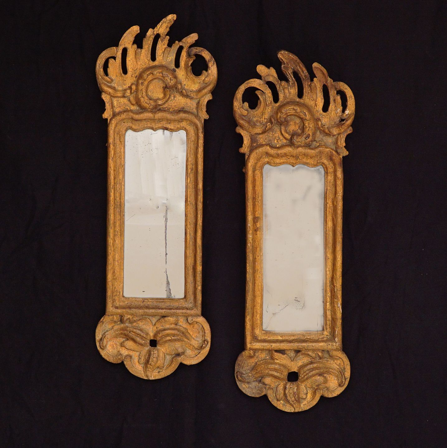 A pair of small Rococo mirrors Denmark circa 1760 55x19cm Item number: 1619
