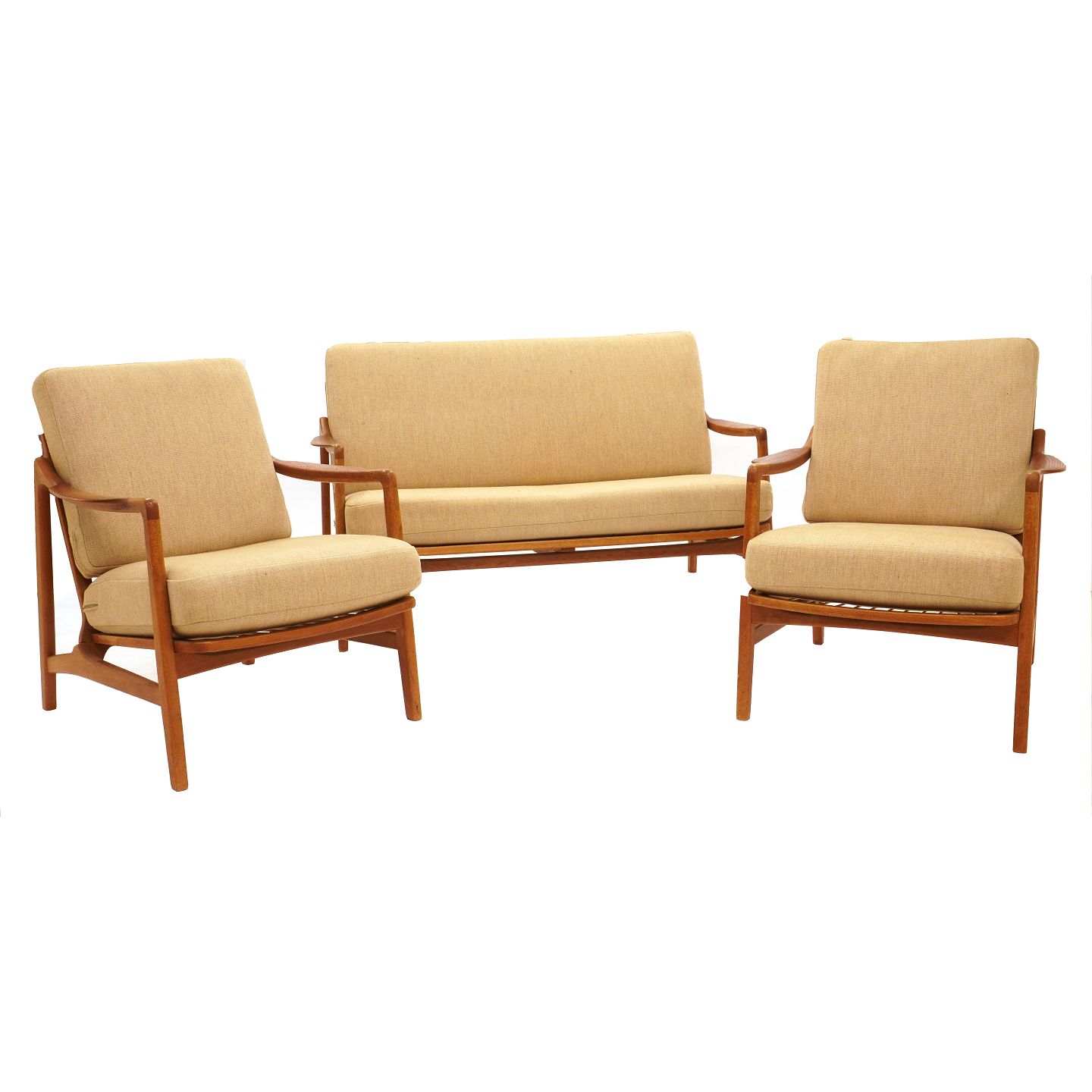 Set of sofa and two lounge chairs by Tove & Edvard Kindt Larsen manufactured by France and Daverkosen, oak and teak Item number: 715