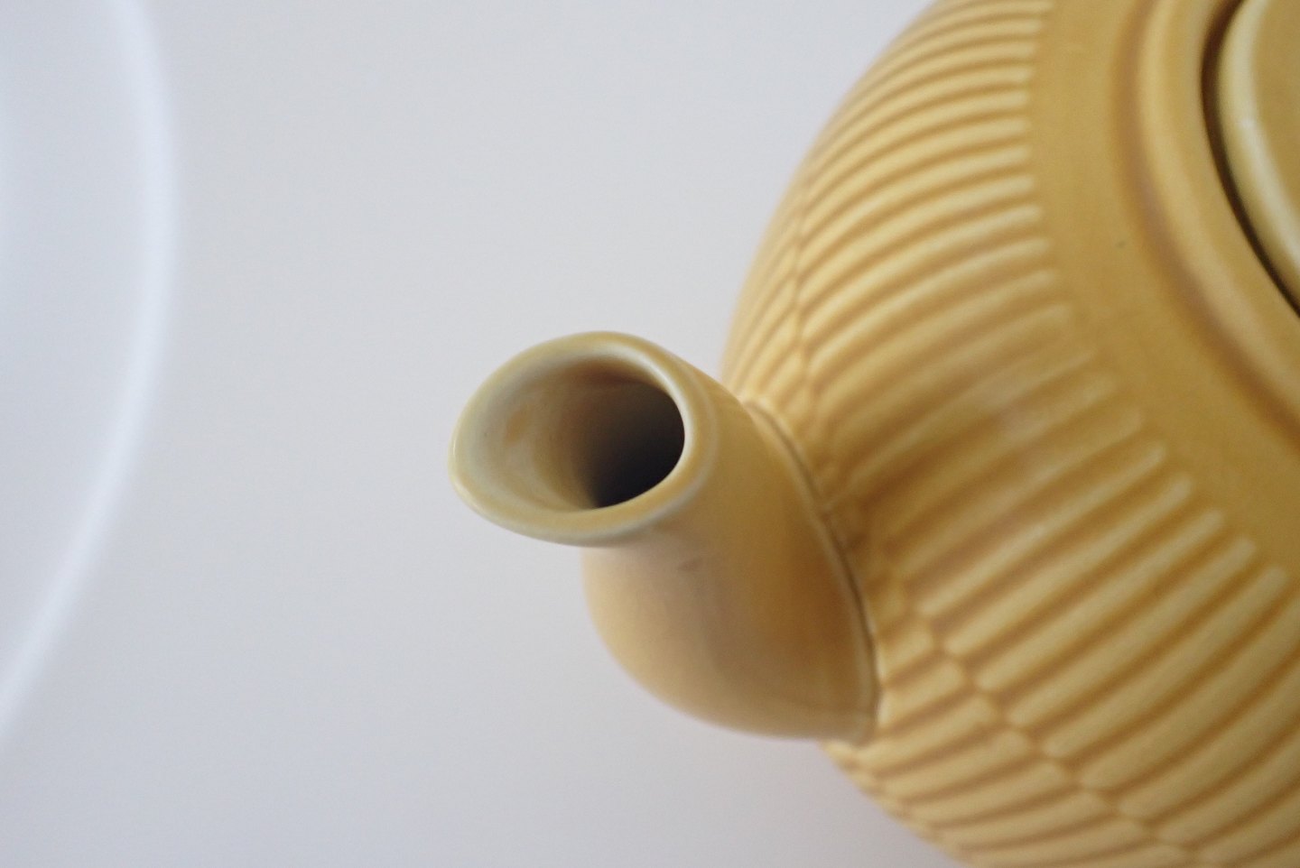 Aluminia - stor Marselis tekande med gul glasur, designet af Nils Thorsson (1940 - 1943). Mål: 15 x 24 cm. I fin nærmest ubrugt stand.