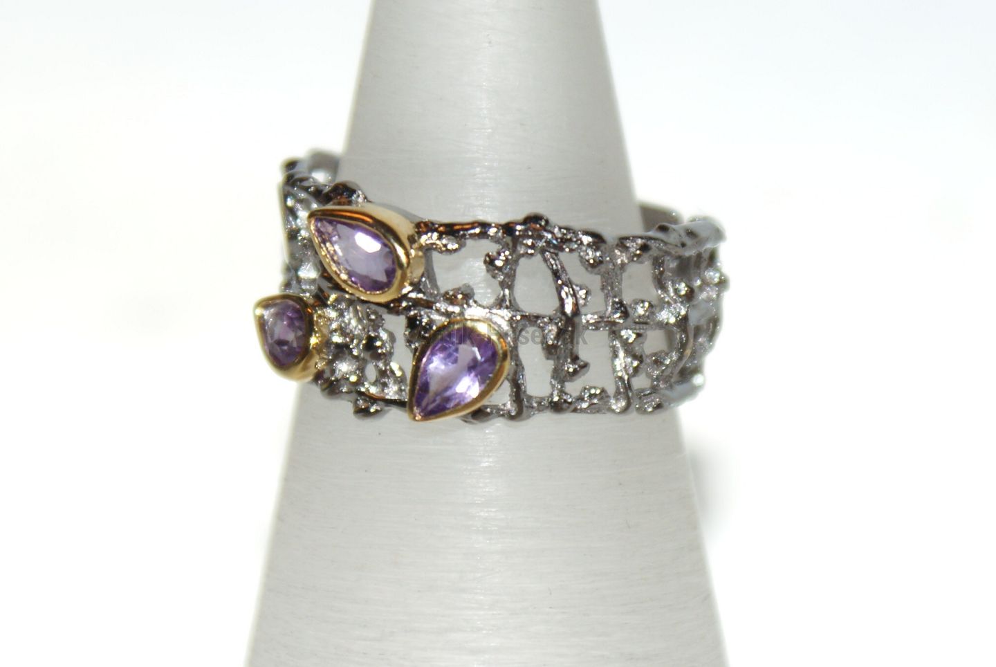 Designers Favorites ring, Sterling silver 230 Black Rhodium and 18 karat gold plating Stone: Amethyst, Pear 5 * 3-3 paragraphs. One Size Stamp: 925 Danish Perfect condition