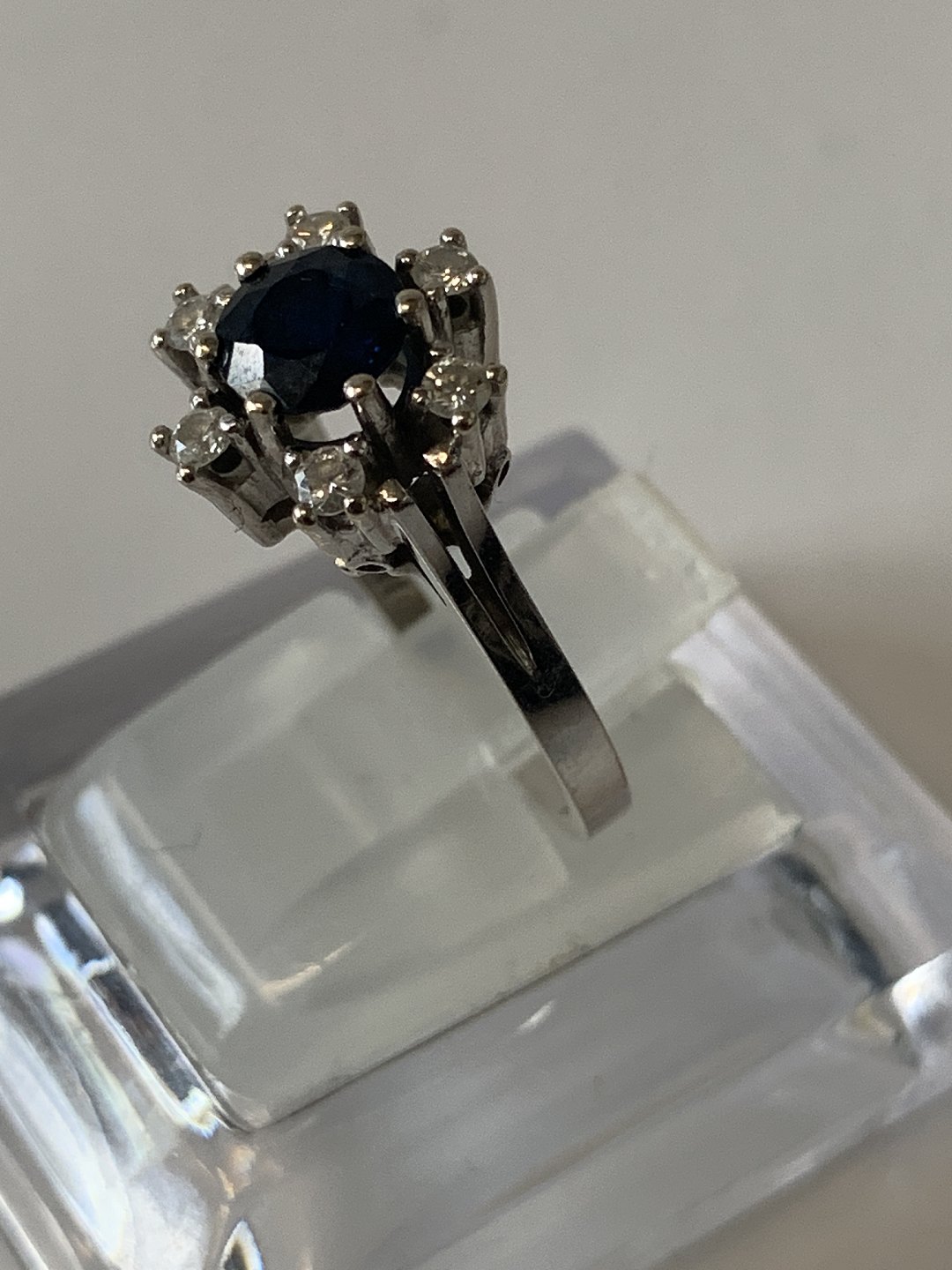 White Gold Ring with Sapphire & Diamonds, 14 Karat