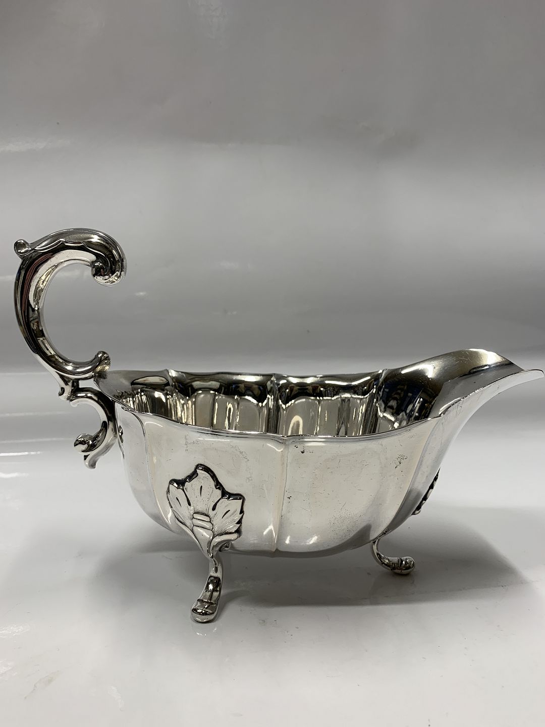 Silver sauce bowl on three feet .Carl M. Cohr.