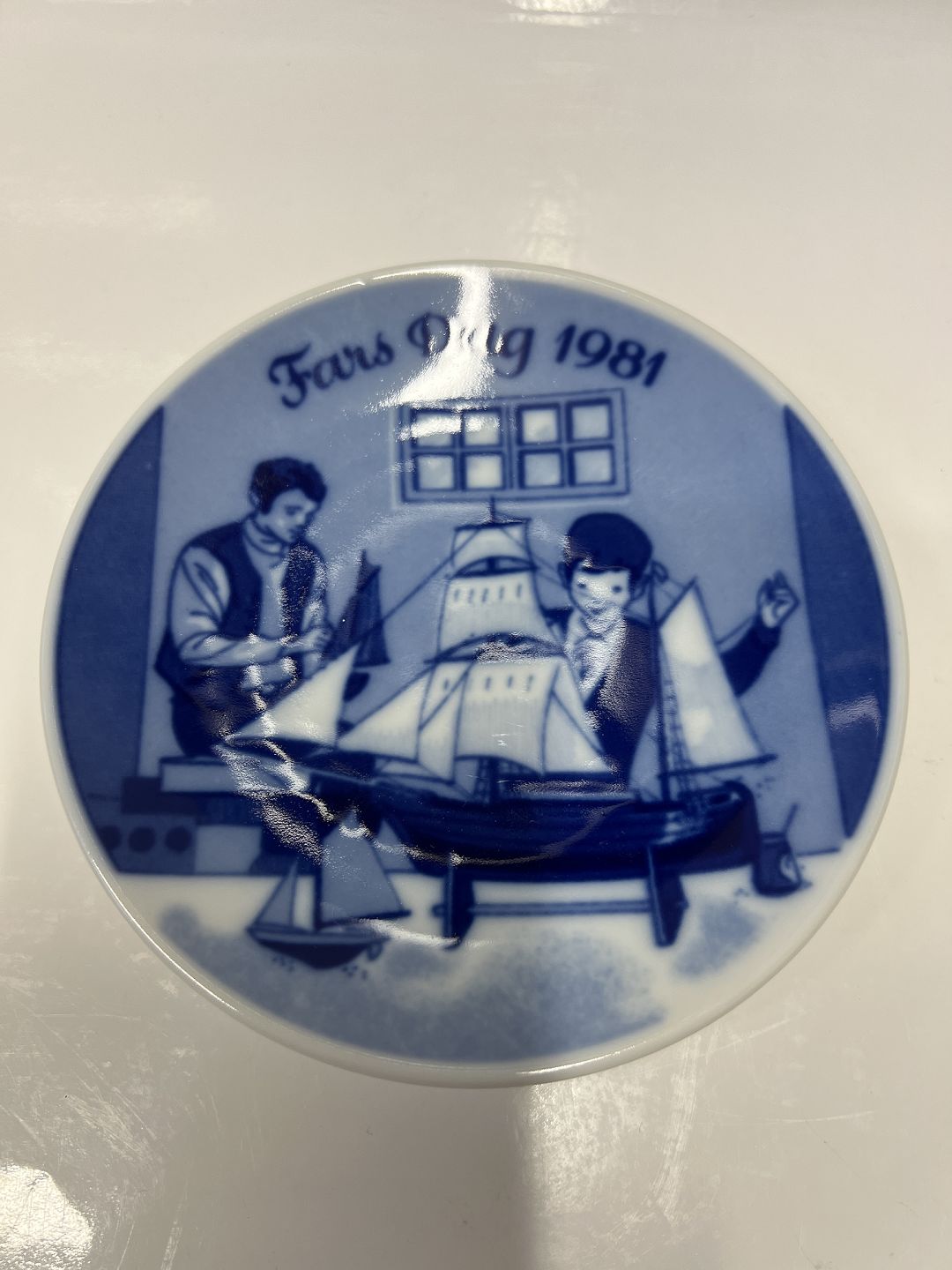 Porsgrund Fars Dag Platte 1981. Måler 13 cm Fars dag platten er den første i en samleserie Porsgrunds porcelænsfabrik Norway Pæn og velholdt stand