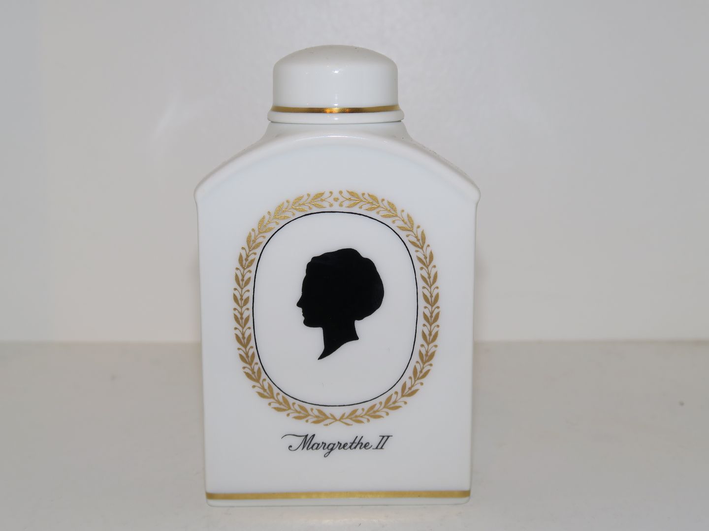 Royal Copenhagen lidded tea caddy - Margrethe and Queen Juliane Marie dated May 1st. 1975. Factory first. Heitght 10.5 cm. Perfect condition.