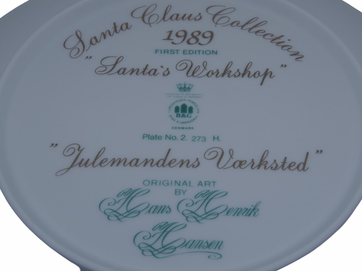 Bing & Grøndahl Santa Claus Collection platte, Julemandens Værksted fra 1989.