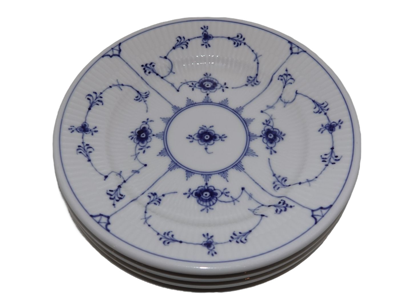 Royal Copenhagen Musselmalet Riflet Jernporcelæn, stor kagetallerken. Dekorationsnummer 1/2055. 1. sortering. Diameter 17,2 cm. Perfekt stand uden fejl.