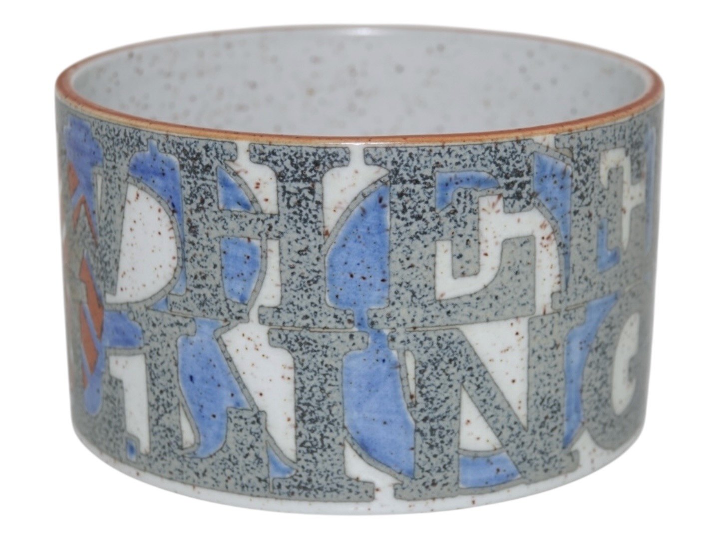 Royal Copenhagen keramik, skål med bogstaver designet af Bo Kristiansen. Denne er nummer 99 ud af 500 eksemplarer. 1. sortering. Diameter 11,8 cm., højde 7,0 cm. Perfekt stand uden fejl.