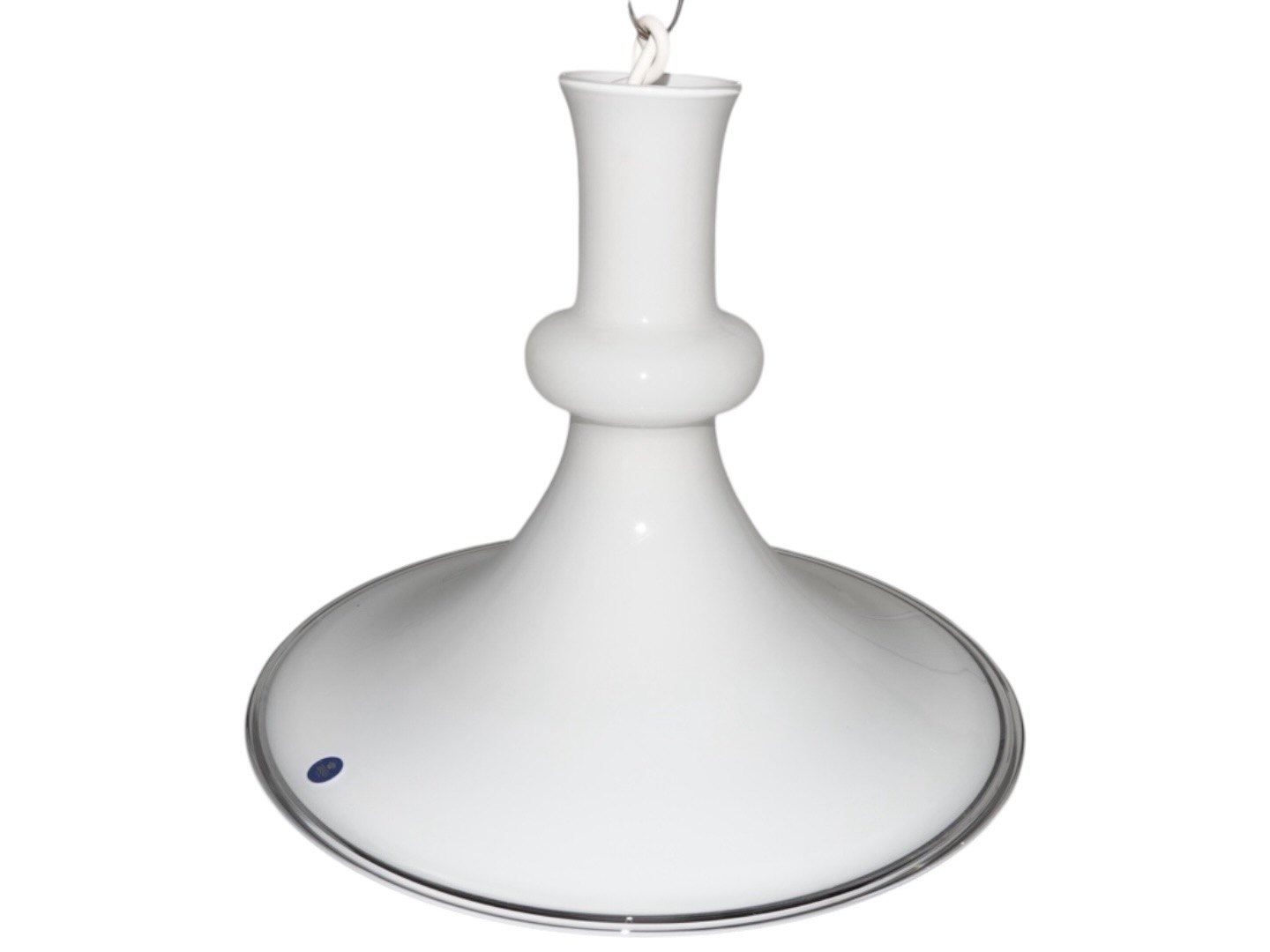 Holmegaard / Royal Copenhagen, stor Etude pendel i hvidt glas med den yderste kant med klart glas. Diameter 38,0 cm. Lampen har en meget kort ledning ellers fin fejlfri stand.