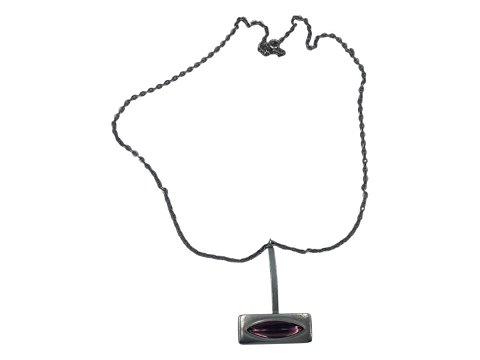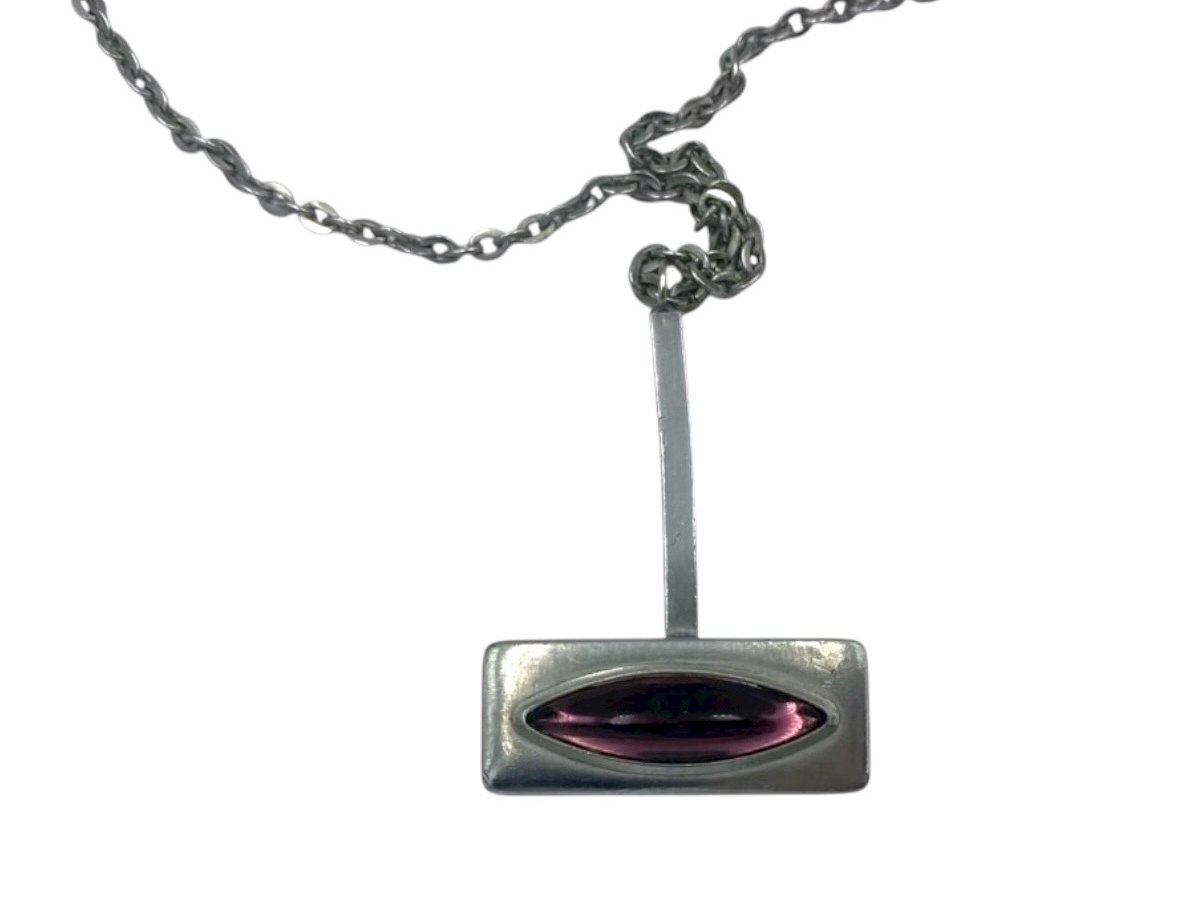 Jørgen Jensen Tin, stort vedhæng med lilla glassten og halskæde.