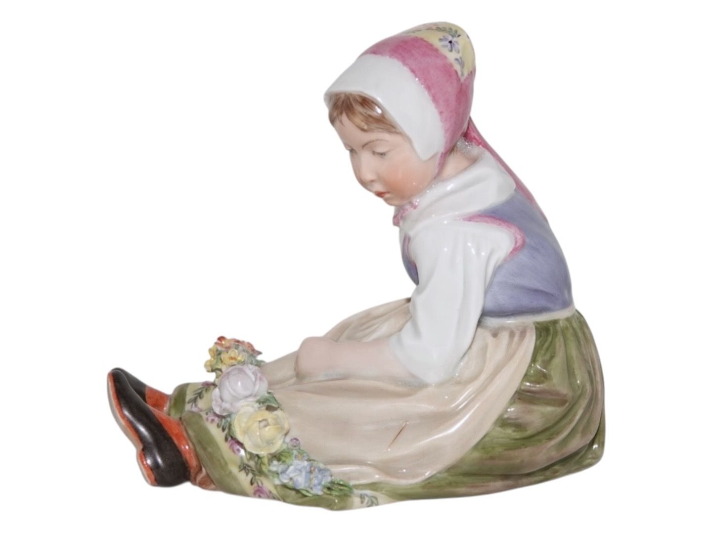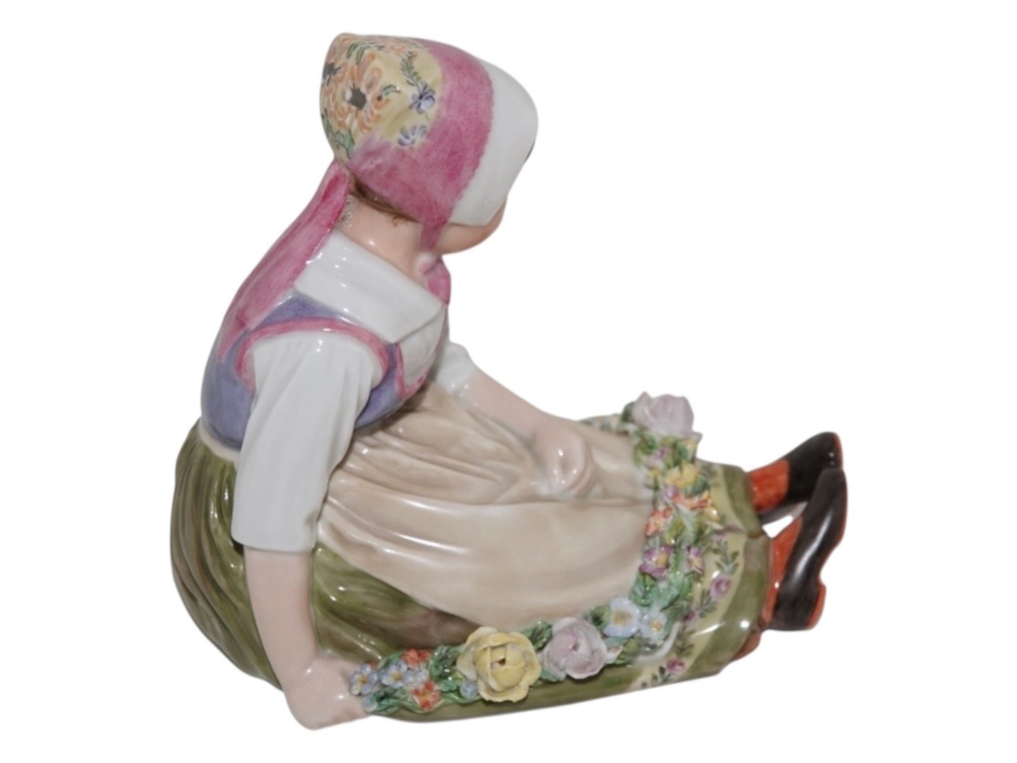 Royal Copenhagen overglasur figur, pige i egnsdragt fra Sjælland.