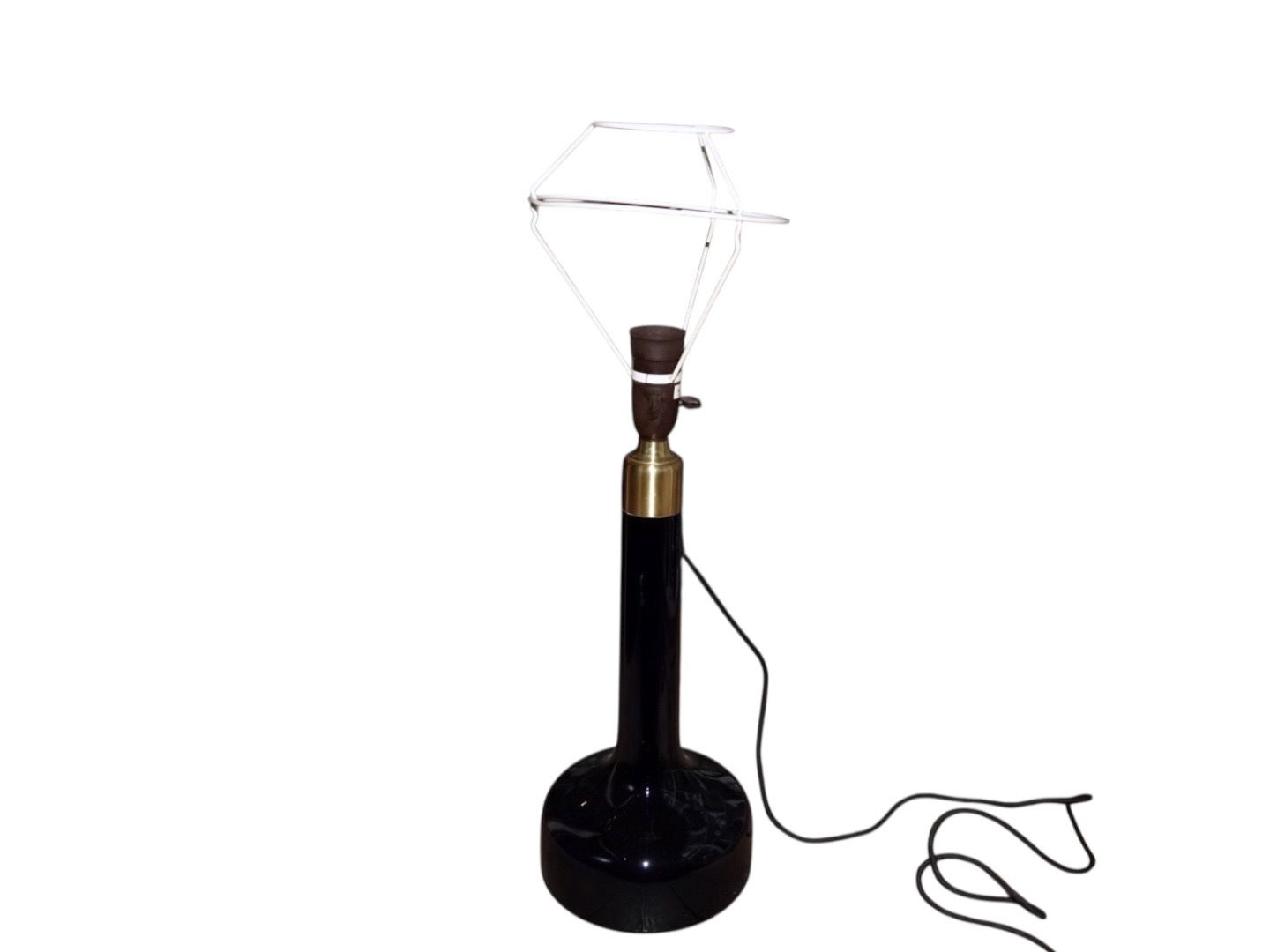Stor mørkeblå bordlampe.