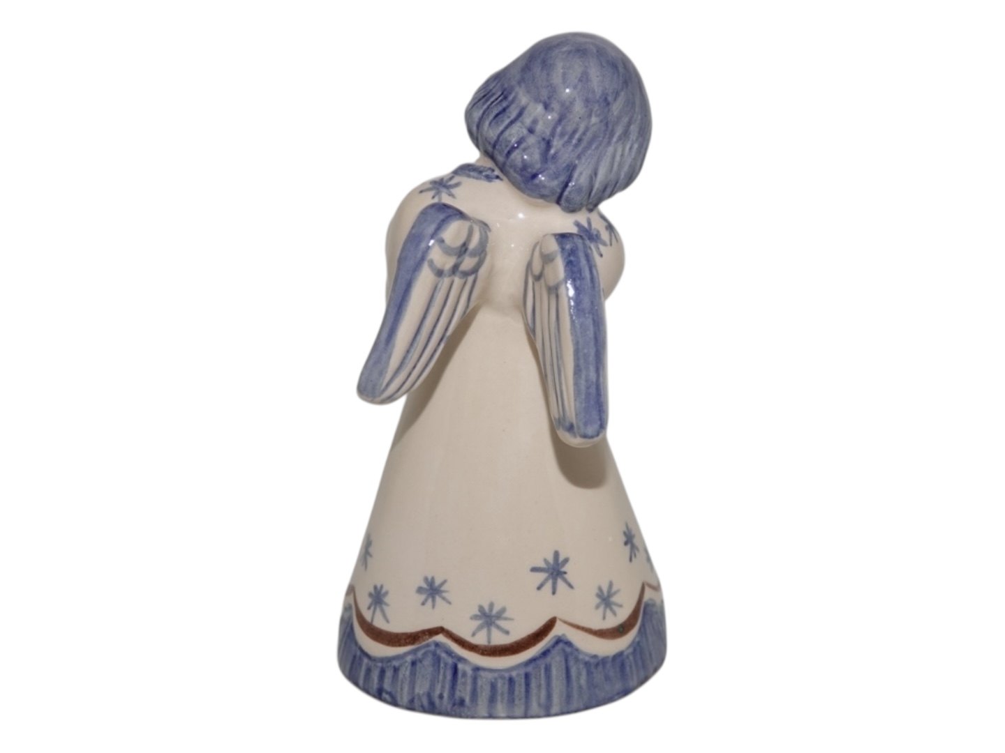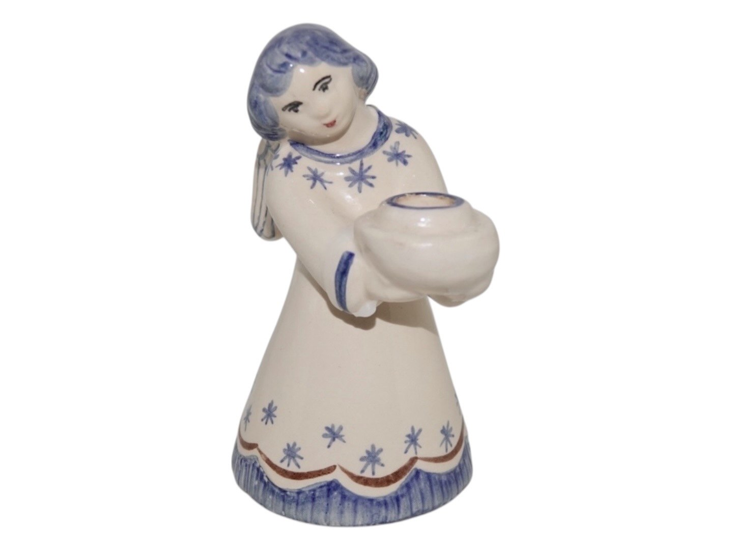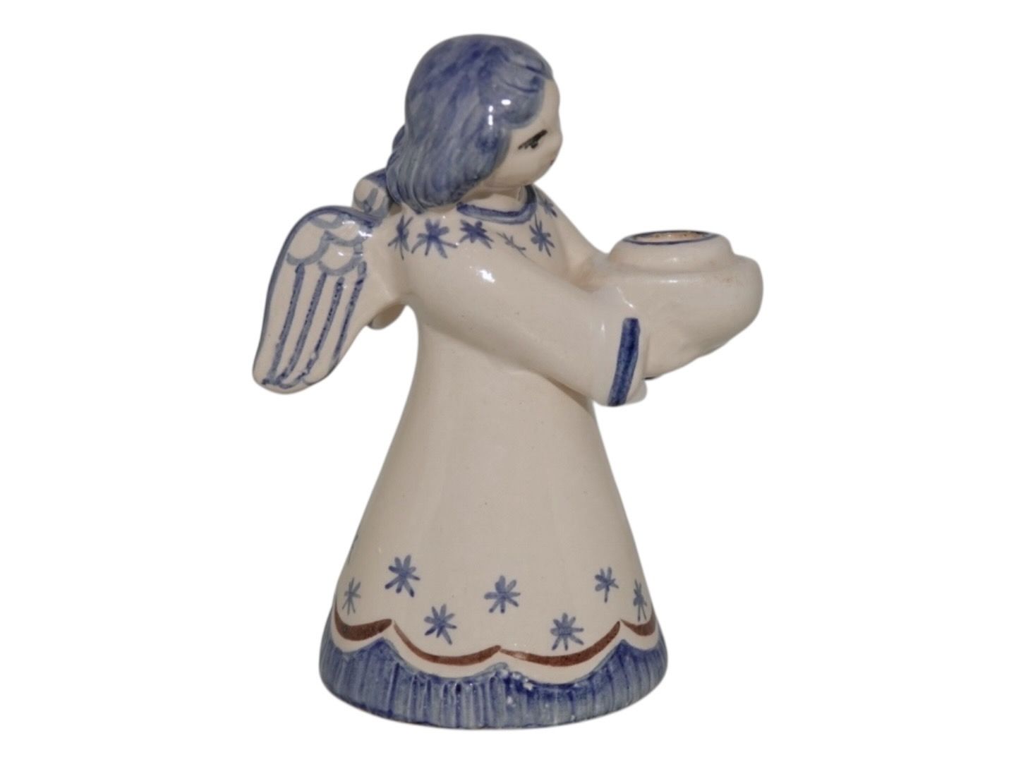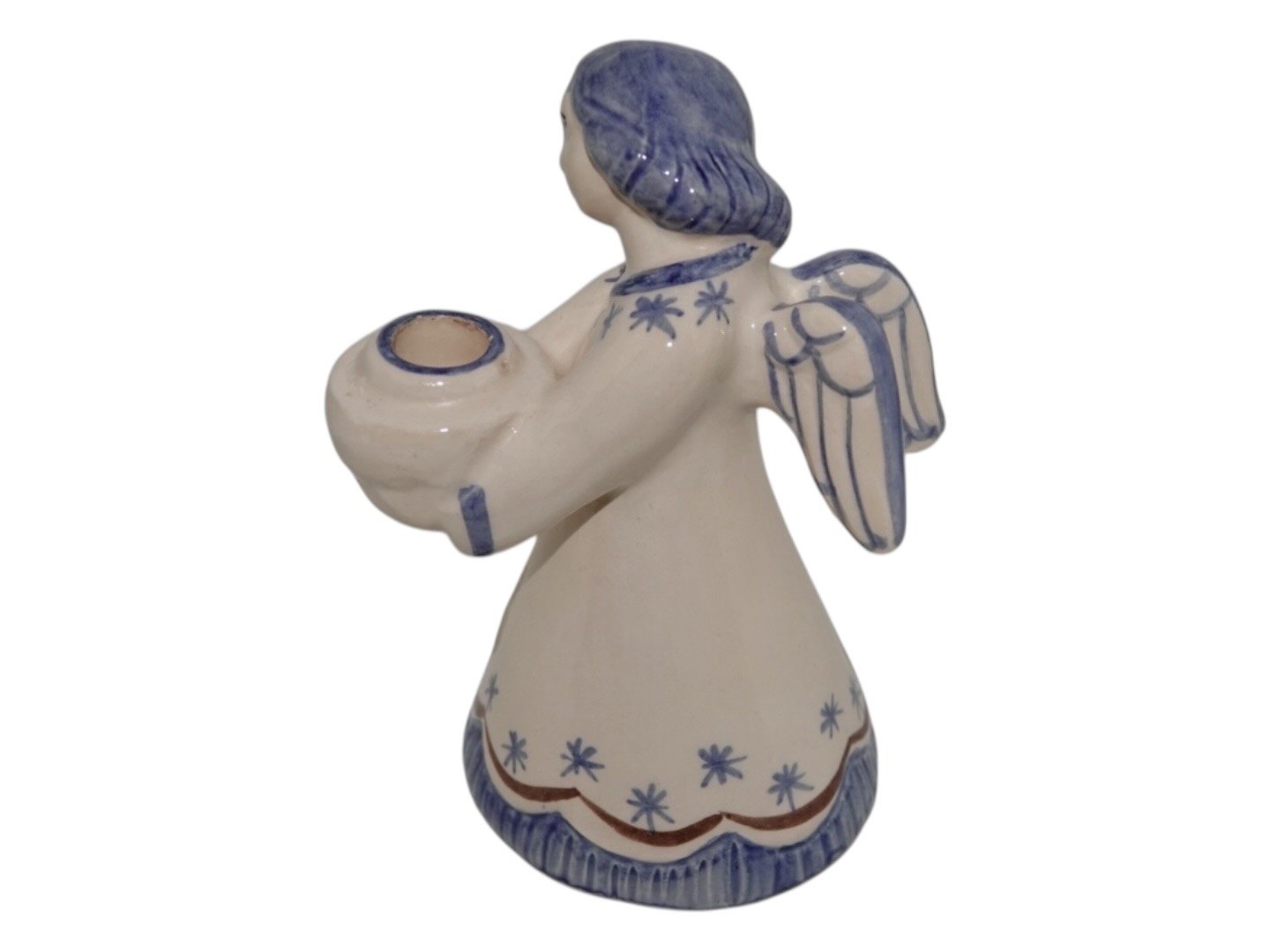 Hjorth Keramik, engel figur / lysestage med cremehvid og blå dekoration.