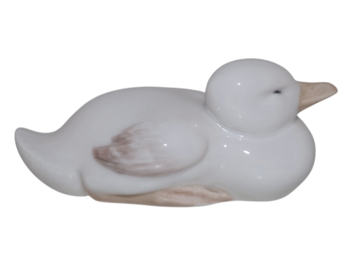 Sjælden Royal Copenhagen figur, hvid and. Fabriksmærket viser at denne er produceret i mellem 1894 og 1897. 1. sortering. Længde 11,1 cm. Perfekt stand uden fejl.
