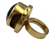 Reeslev Design ekstra stor 14 karat guld ring med stor facetslebet røgkvartssten.