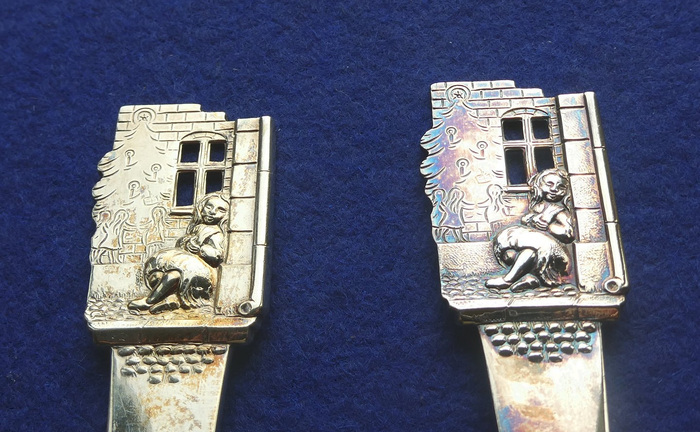 H.C. Andersen barnebestik i tretårnet forgyldt sølv med Den lille Pige med Svovlstikkerne.