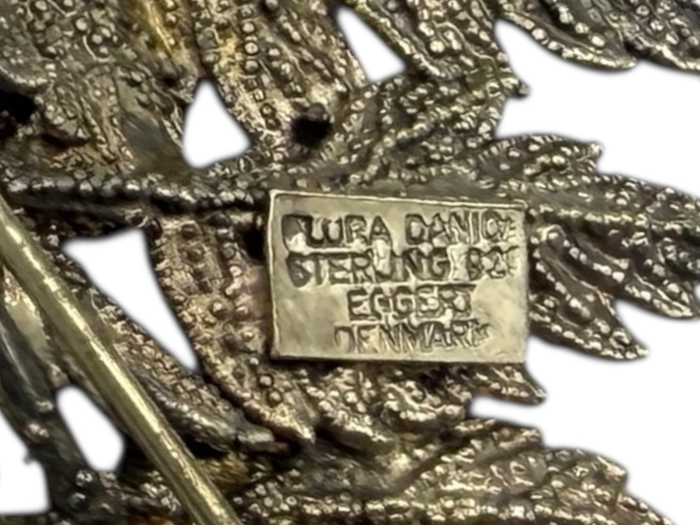 Flora Danica broche i kraftigt let forgyldt sterlingsølv