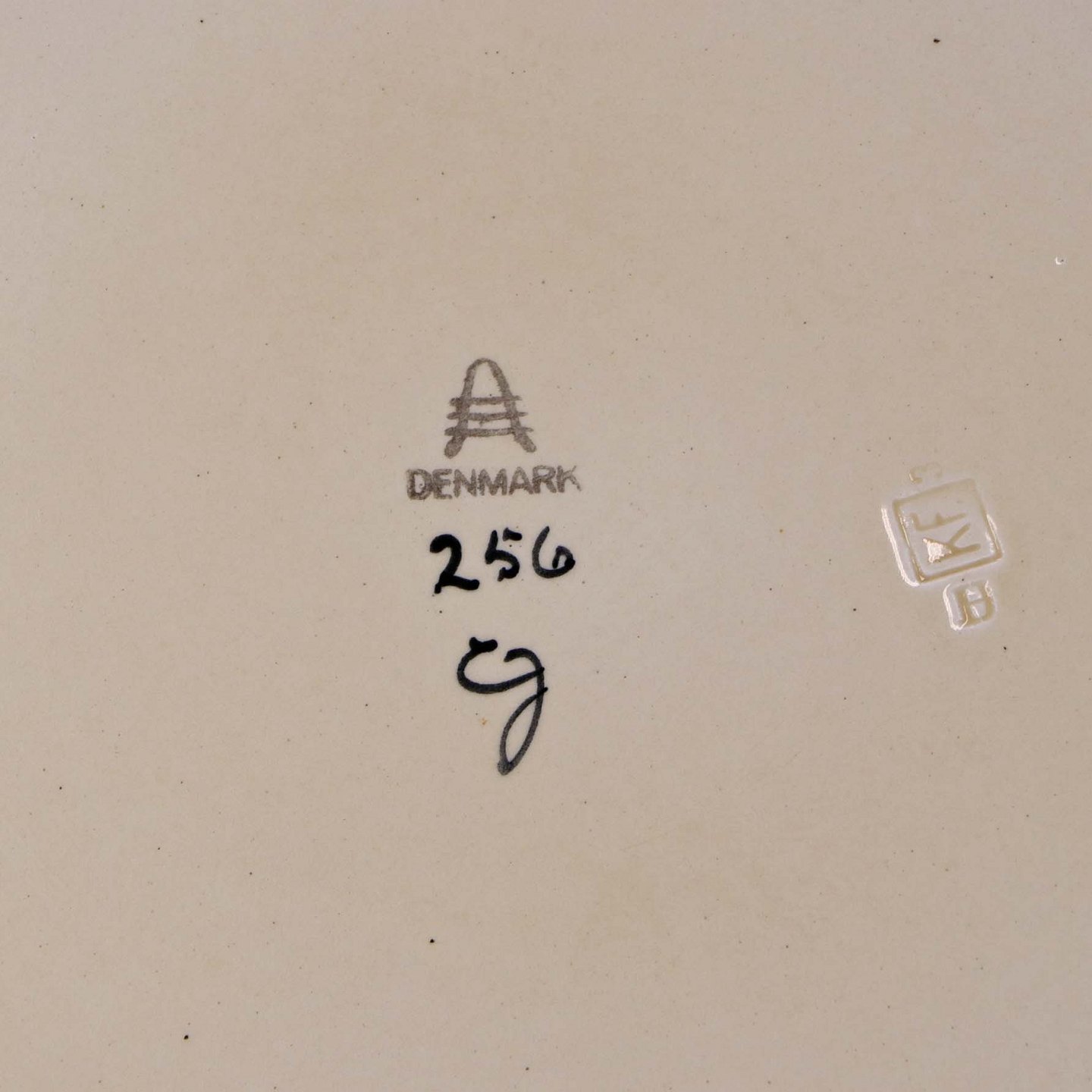 Rundt serveringsfad i fajance fra stellet Dragsholm fremstillet i perioden 1934-1965. Nr 256