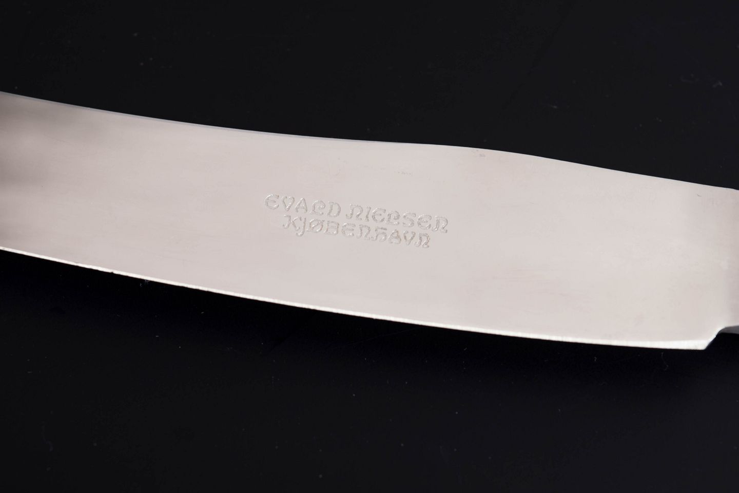 Elegante frokostknive i sterlingsølv og rustfrit stål. Model nummer 14 med klassisk, let afrundet skaftform med diskret perlekant og glat klinge. Fremstillet hos Evald Nielsen.