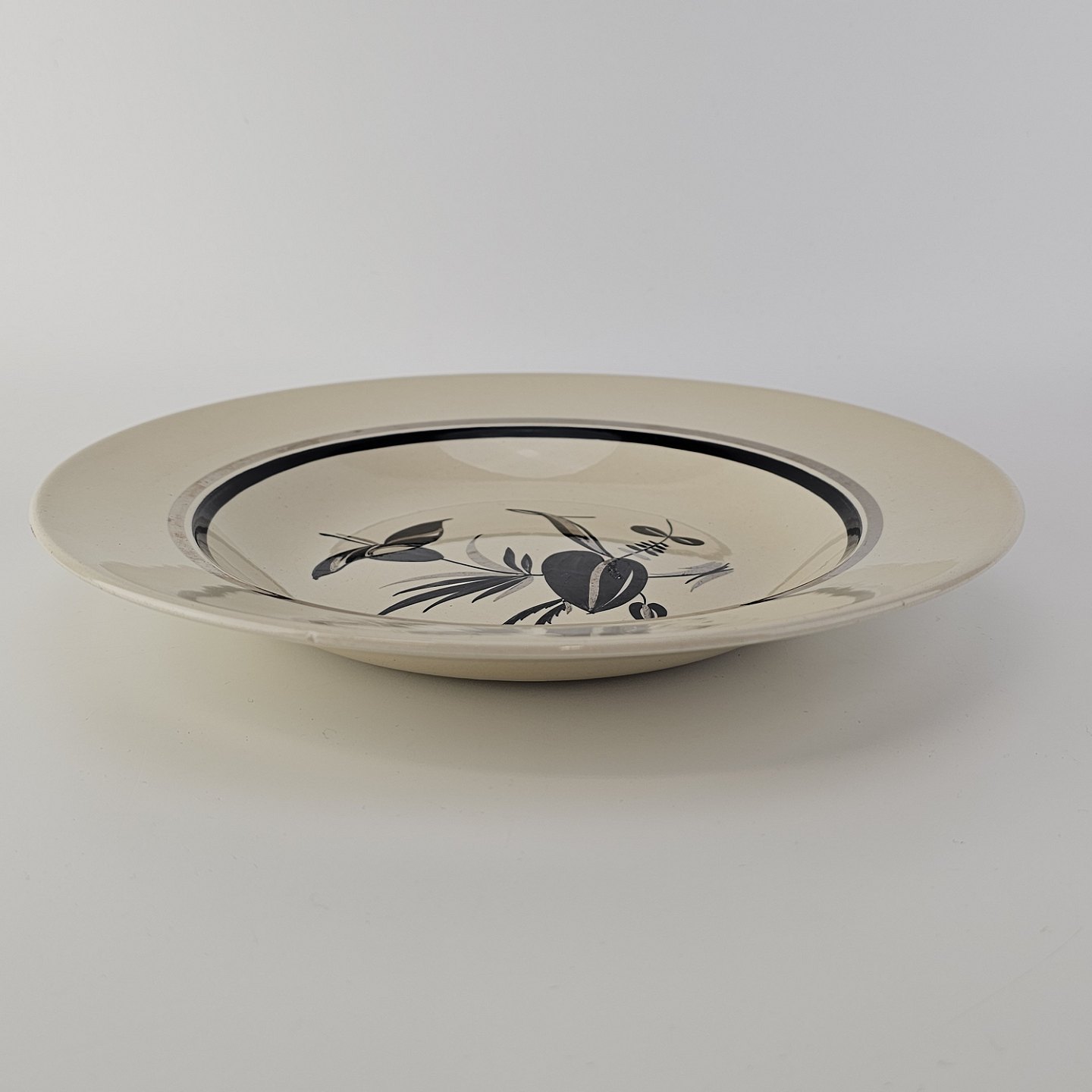 Dyb tallerken i fajance fra stellet Dragsholm fremstillet i perioden 1934-1965.