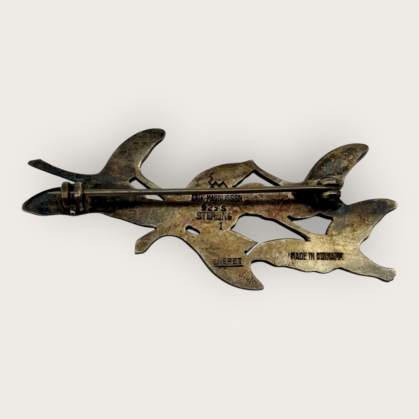 Erik Magnussen, broche i sterling sølv, De fem svaner fra Norden (Symboliserer de fem nordiske lande), Mål ca. 6x2,5cm * pæn stand*