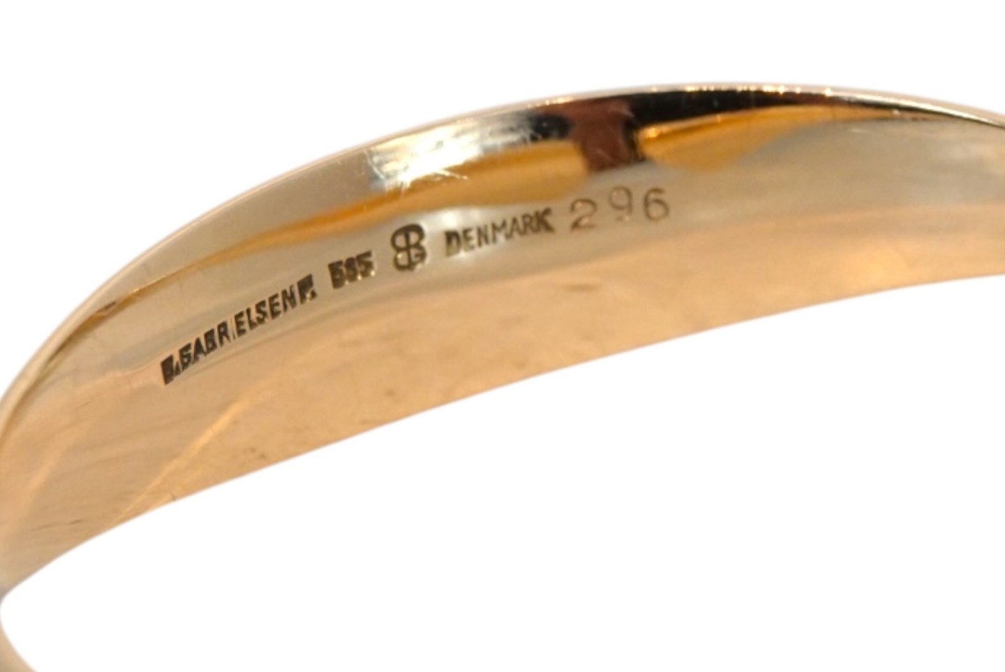 Stemplet "B. GABRIELSEN 585 DENMARK 296" Bent Gabrielsen var sølvsmed og guldsmed i Kolding fra 1969 til 1980.