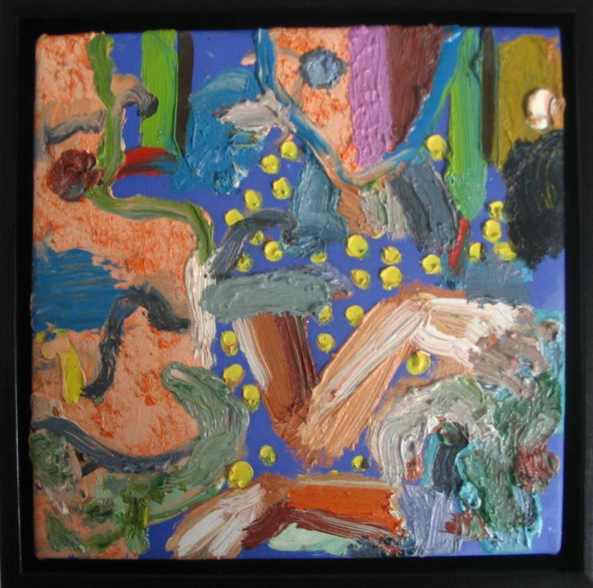 Bredtved, Michael (1959- ) Danmark: Supermodel. Olie på lærred/træ. Signeret på bagsiden.: Bredtved. 20 x 20 cm. Med sort svæveramme.