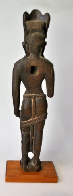 Antik indisk træfigur af stående mand, 18./19. årh. På nyere sokkel af mahogni. Højde med sokkel: 31 cm.  NB: Del af arm mangler. Montage hul i ryggen.