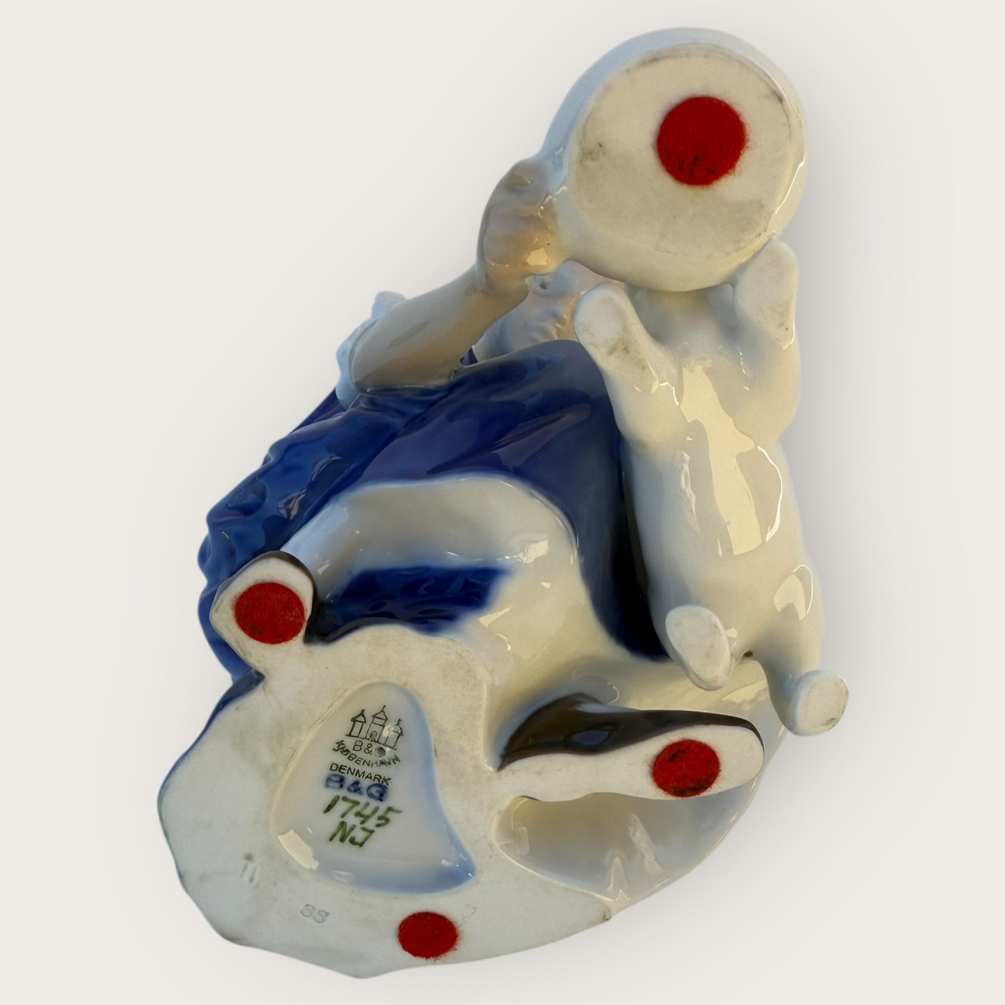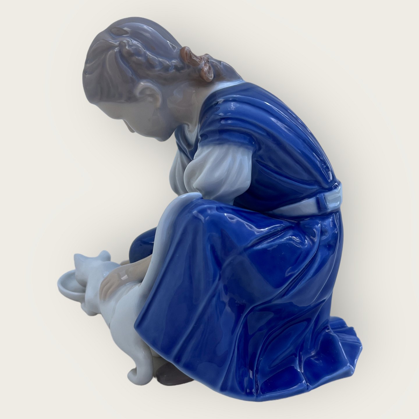 Bing & Grøndahl, "Kun en dråbe", Pige med kat #1745, 14,5cm høj, 1.sortering, Design Ingeborg Plockross Irminger *Pæn stand*