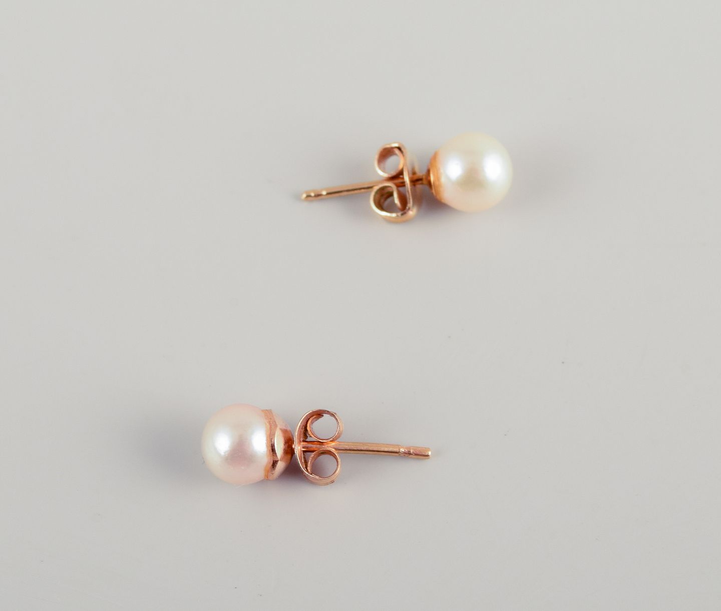 Swedish goldsmith. A pair of classic ear studs in 18 karat gold adorned with cultured pearls.