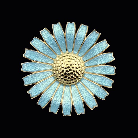 A. Michelsen Marguerit / Daisy Broche i forgyldt sterling sølv med turkis emalje - 43mm.