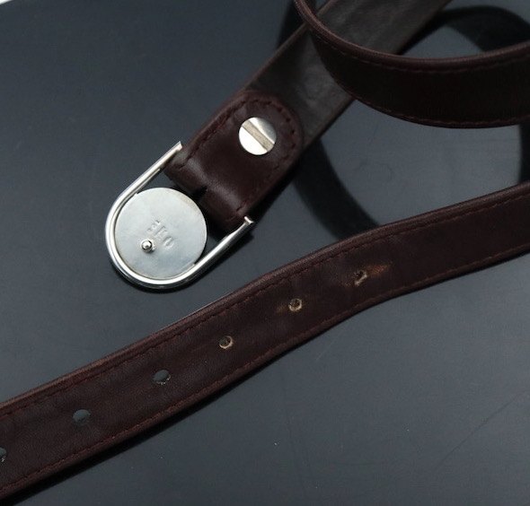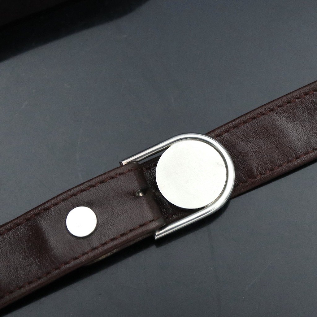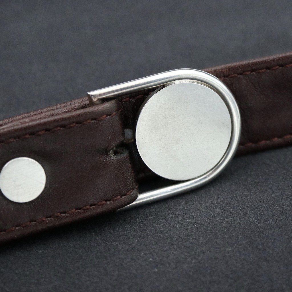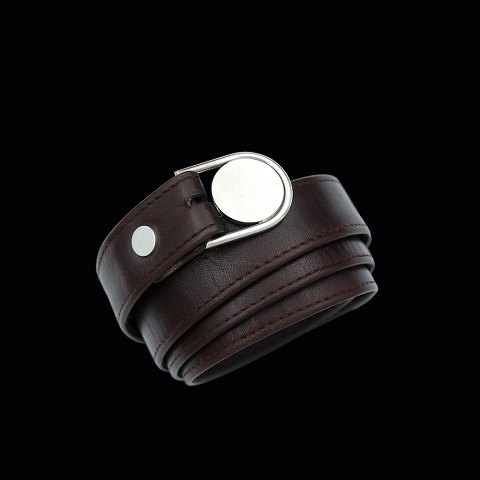 Georg Jensen Bæltespænde i sterling sølv #108 med tilhørende bælte i mørk brun læder.