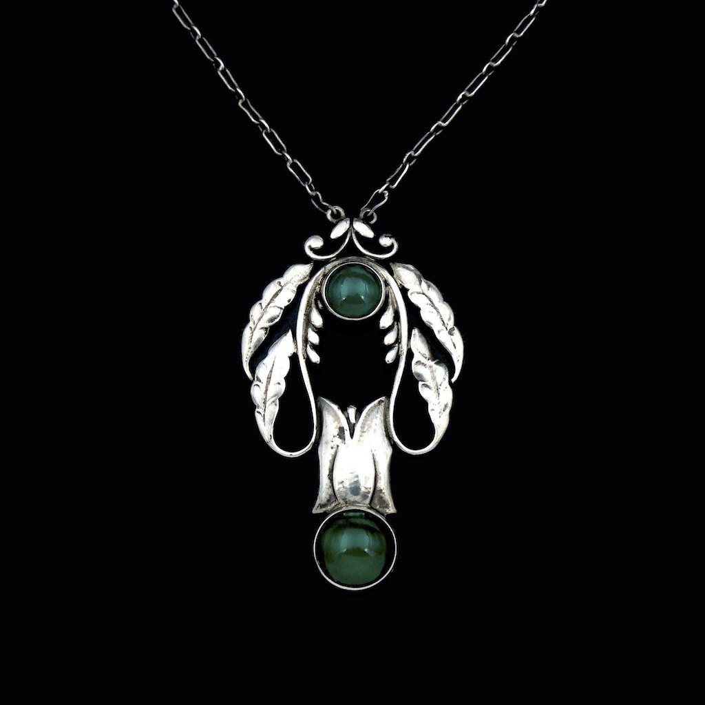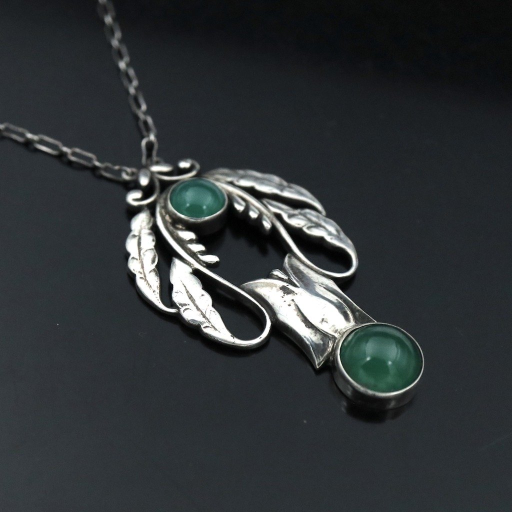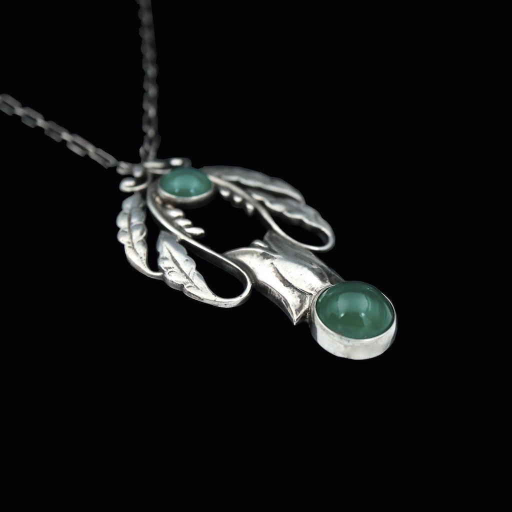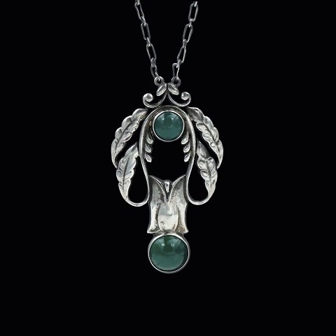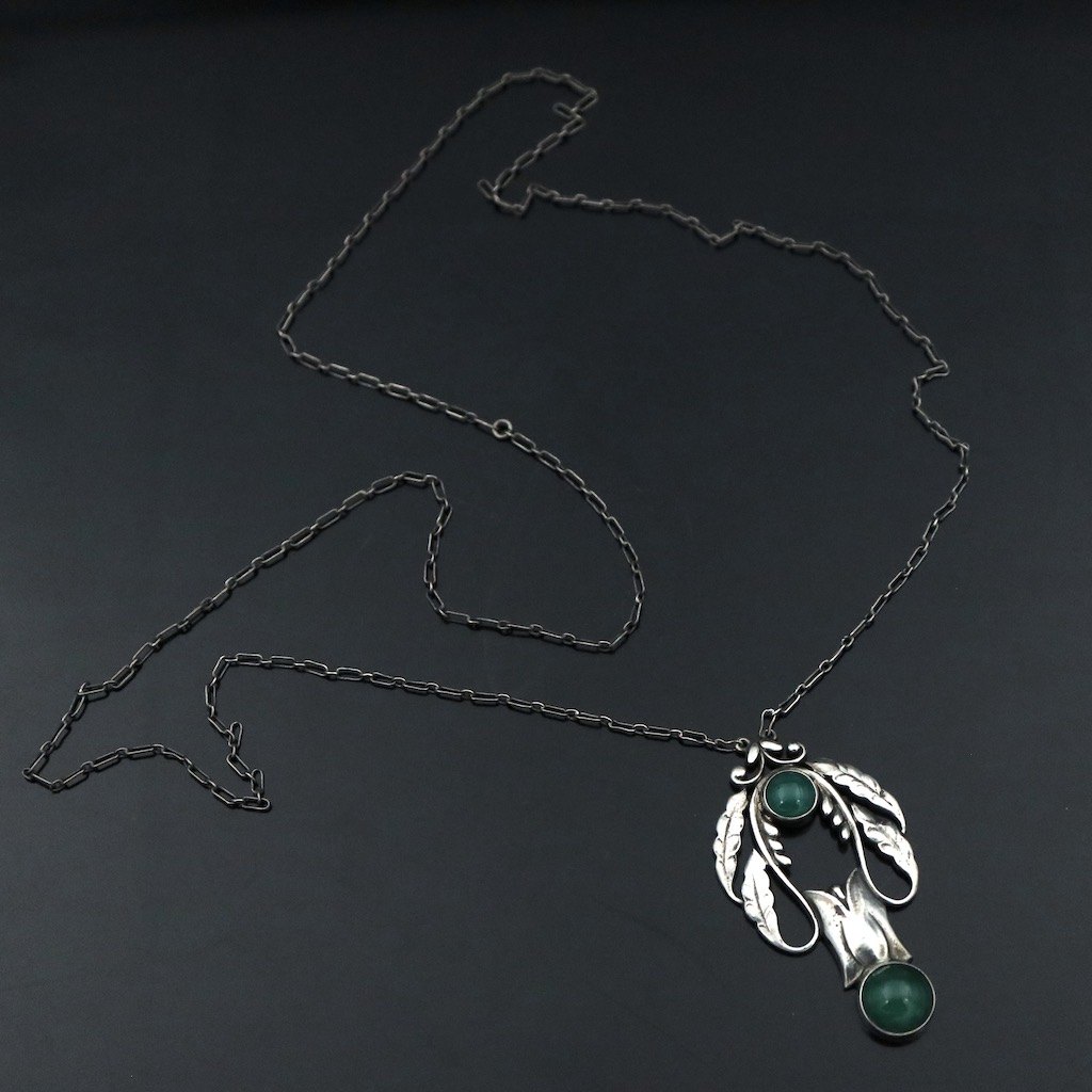 Georg Jensen. Vedhæng i sølv med grøn agat #43.