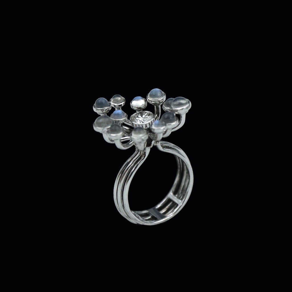 Vilhelm Holmstrup. Ring i 14k hvidguld med månesten og 0,47 ct diamant.
