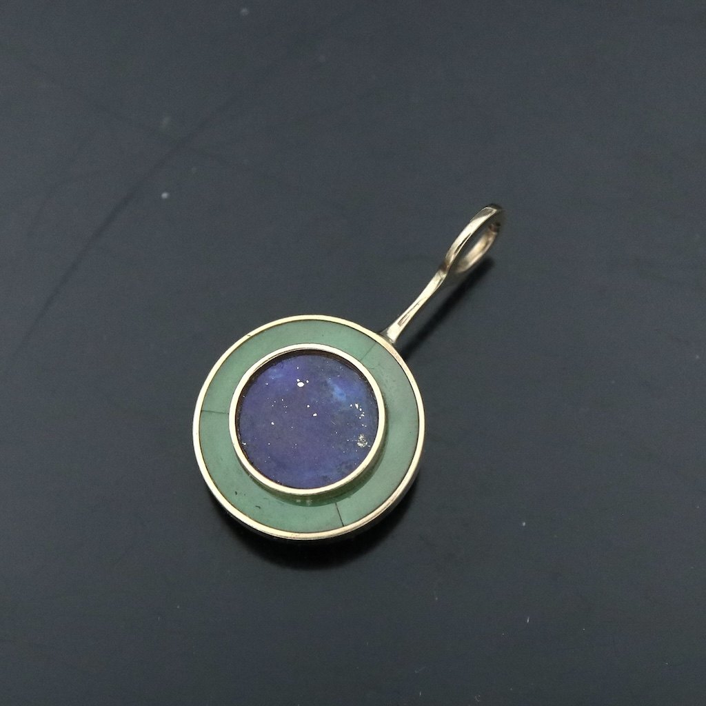 Ole Bent Petersen. Vedhæng i 18k guld med Nephrit & Lapis Lazuli.
