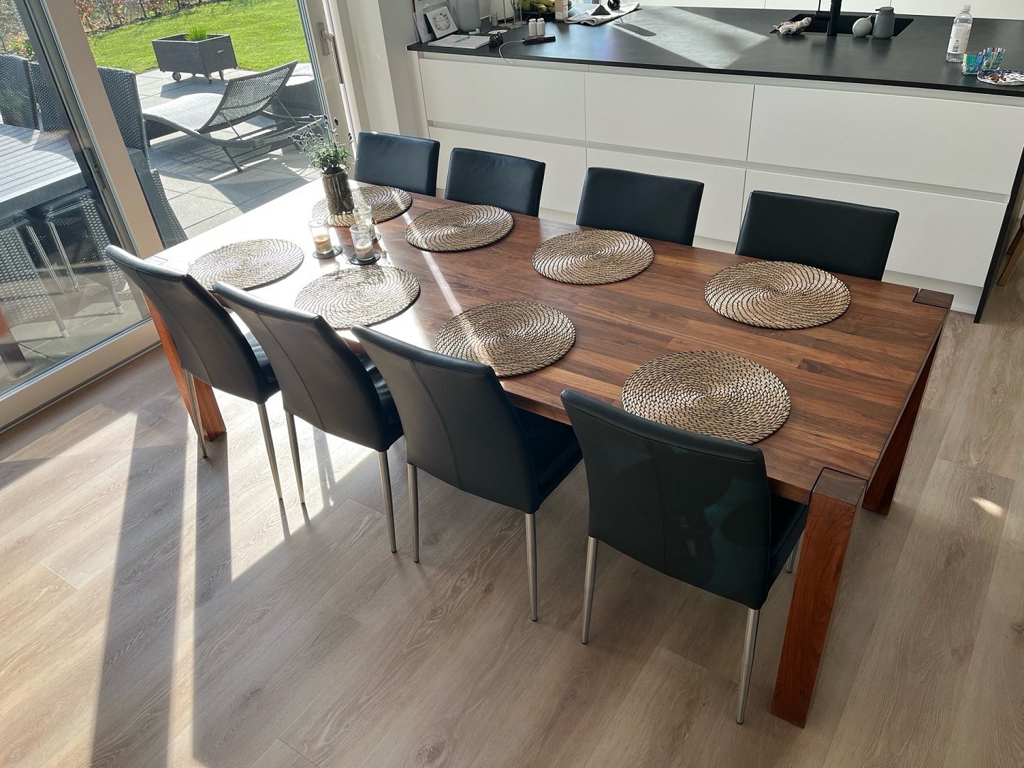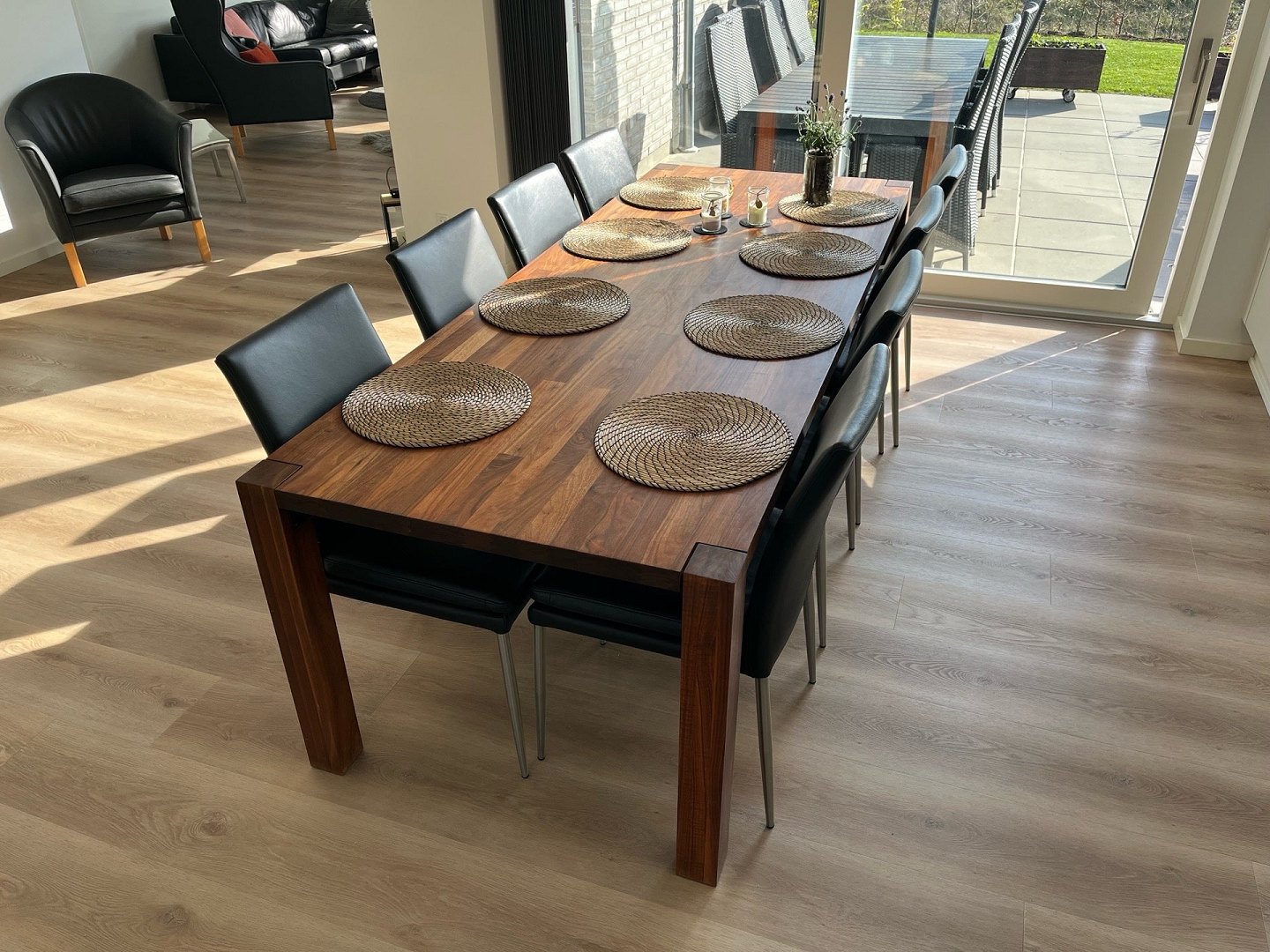 Hand-built custom-made dining table in walnut. The table is built by a cabinetmaker who knows what quality is, the table top is reinforced with iron pieces that are milled into the table top. The table has removable legs. The table is cleaned and oiled and ready for delivery. Table measurements. Length 230 cm. Width 90 cm. Height 73 cm. Our concept. Purchase of newer/used furniture. Thorough cleaning and treatment. Viewing by appointment. Delivery for a fee throughout Denmark. See also our other designer furniture from, among others, Poul Kjørholm, Mogens Hansen, Søren Lund, Arne Jacobsen, Jørgen Gammelgaard, Nielaus, Skalma, Fritz Hansen, Cph, Skovby, Boconcept, and many others on our website Mrretrodesign.dk