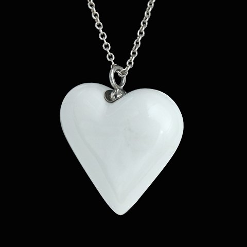 Royal Copenhagen. Hjertevedhæng i porcelæn med sterlingsølv.