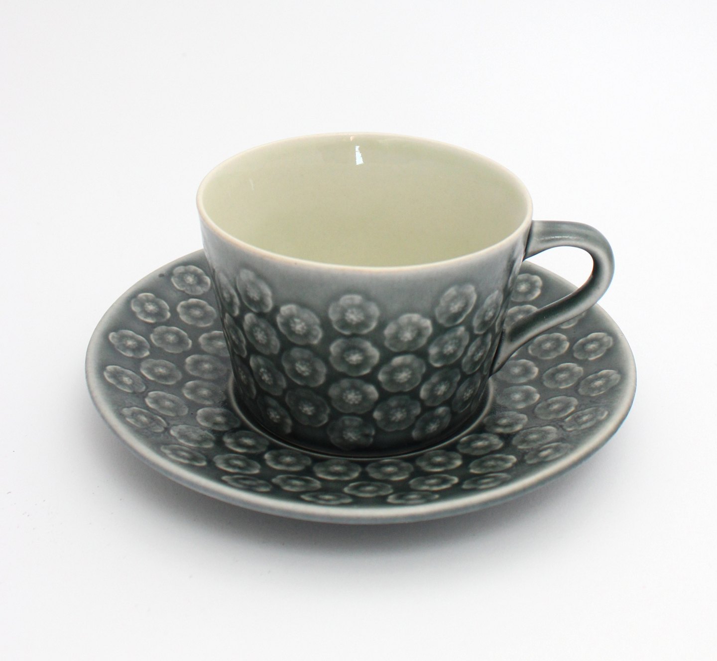 Tekop med underkop. Højde 6 cm. Diameter 8,5 cm. Underkop 15 cm. Flot stand. Pris: 475 kr. stk. Lager: 6