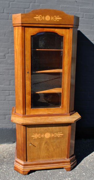 Dansk mahogni bogskab med intarsia, 1910 - 1920. Underskab med en hylde og intarsia. Øverske del med facetteret glas og tre indvendige hylder. H.: 177 cm. B.: 78 cm. D.: 53 cm.