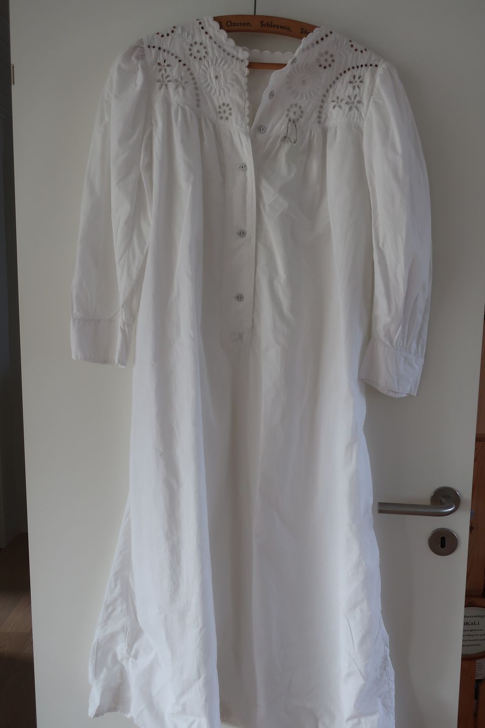 An antique shift with hand made buttonholes, embroidered hand-made initials and other items to make the dress beautiful