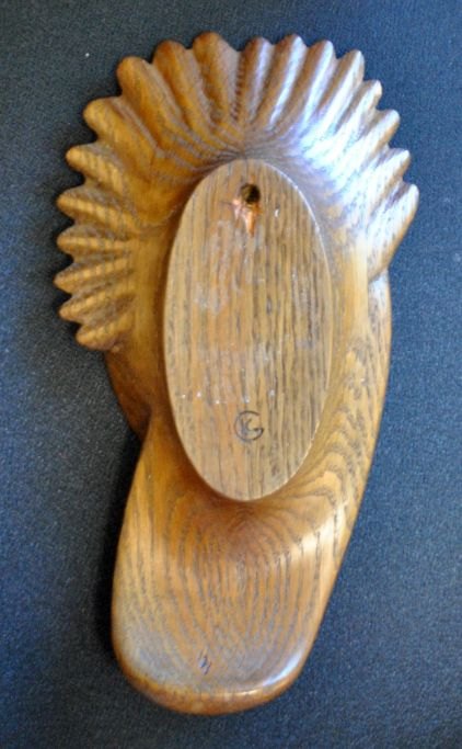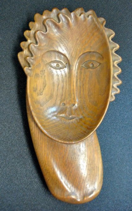 Gibsvad, Knud (1889 - ) Danmark: Kvinde ansigt. Udskåret egetræ. Signeret med monogram. H.: 28 cm.