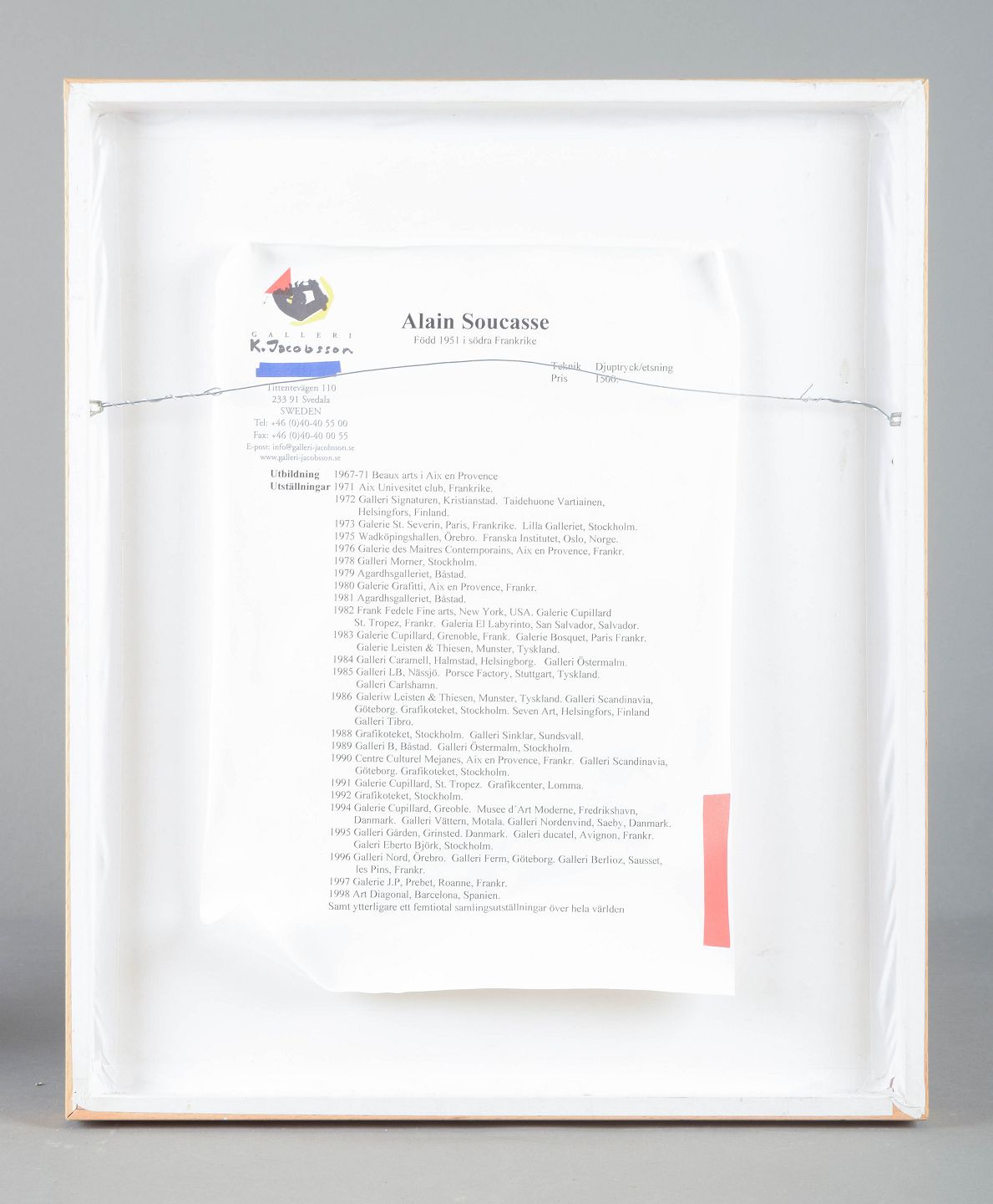 Et karakteristisk litografi af Alain Soucasse, hvor farver, mønstre og tekstfragmenter kombineres i en poetisk og grafisk komposition. Trykket bærer betegnelsen Épreuve d’Artiste (EA), hvilket betyder, at det er et kunstnertryk uden for den officielle oplagsnummerering, i dette tilfælde et særdeles sjældent eksemplar (1 af kun 2 EA).