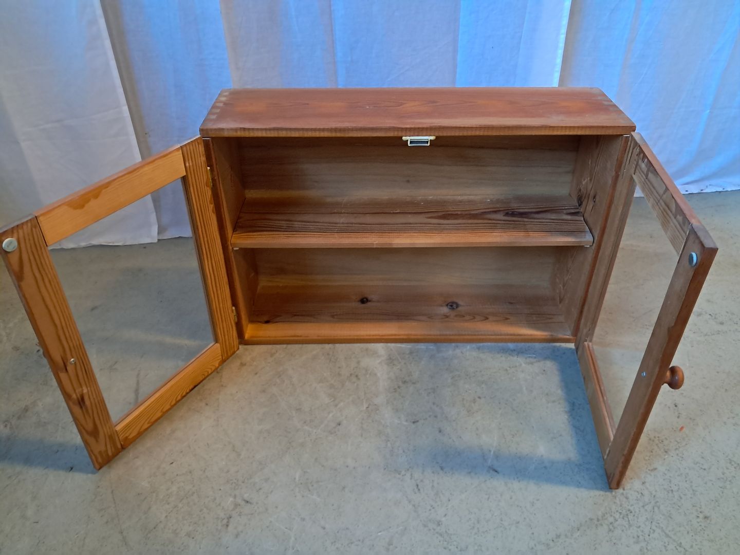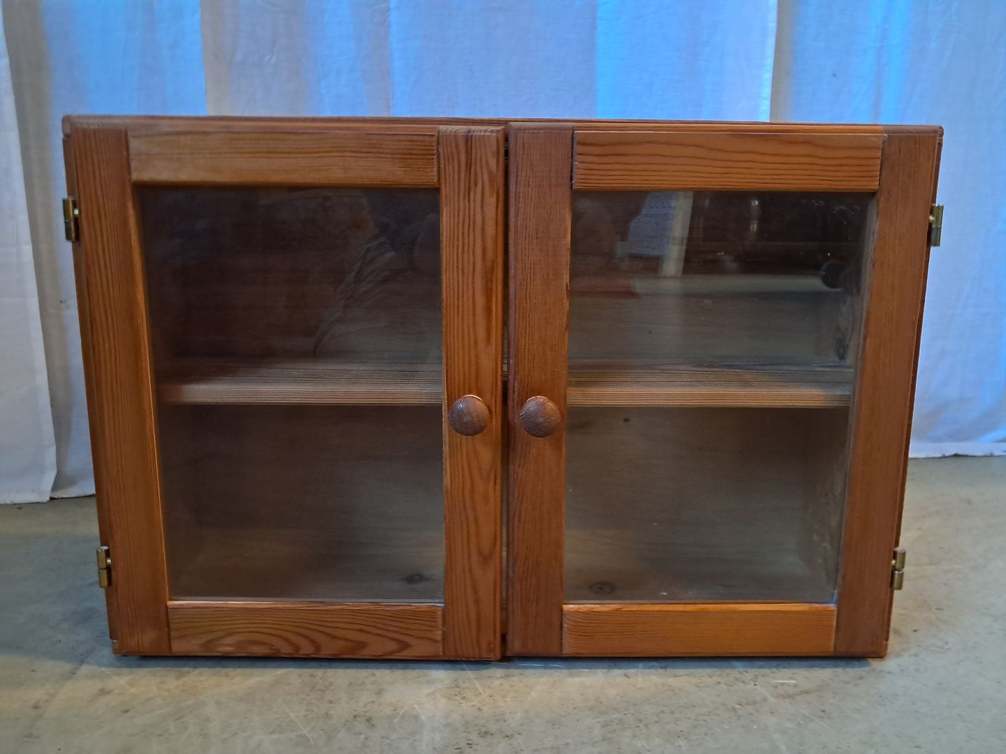 Vitrineskab i massivt fyrretræ, fra 1990erne.