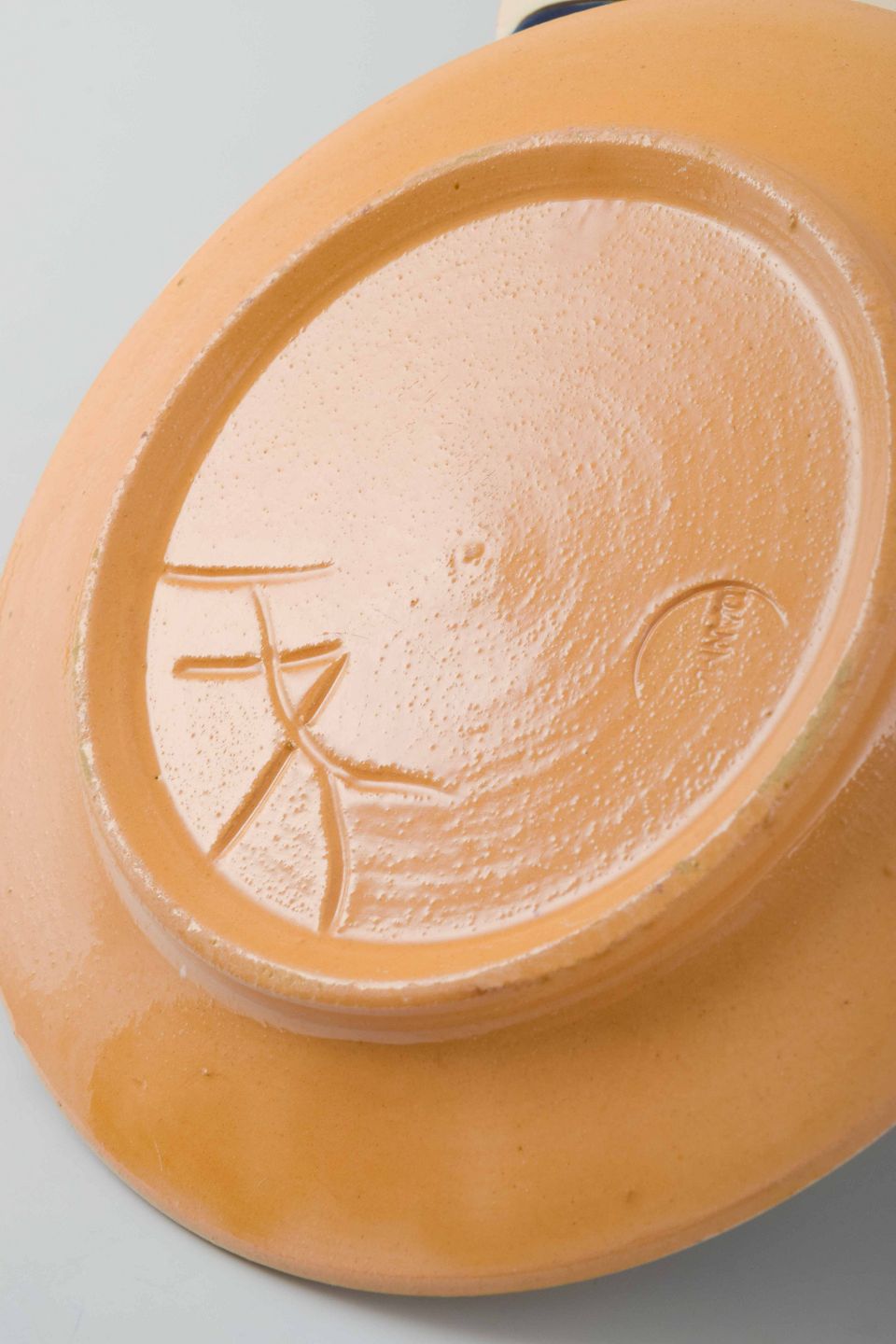 Et dekorativt sæt på seks tallerkner fra Kählers berømte Marguerite-stel, hvor traditionelle former og farver forenes i et udtryk, der kombinerer brugskunst med dekorativ folkekunst.