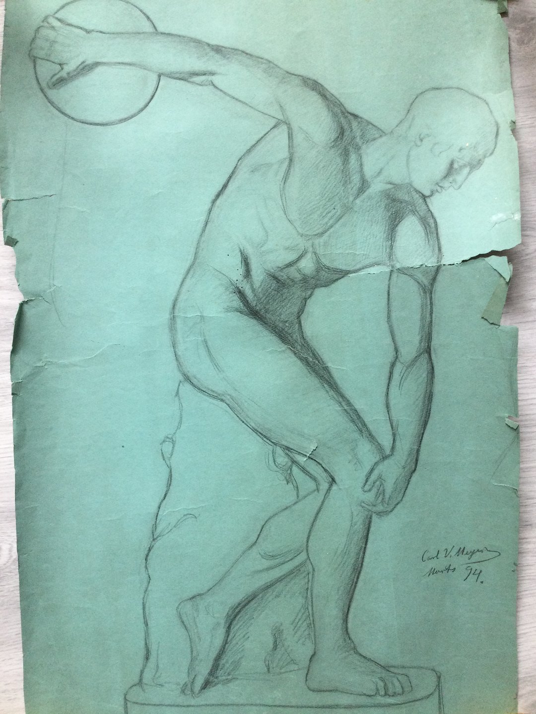 Akademitegning af Carl V. Meyer - Diskoskasteren 1894.