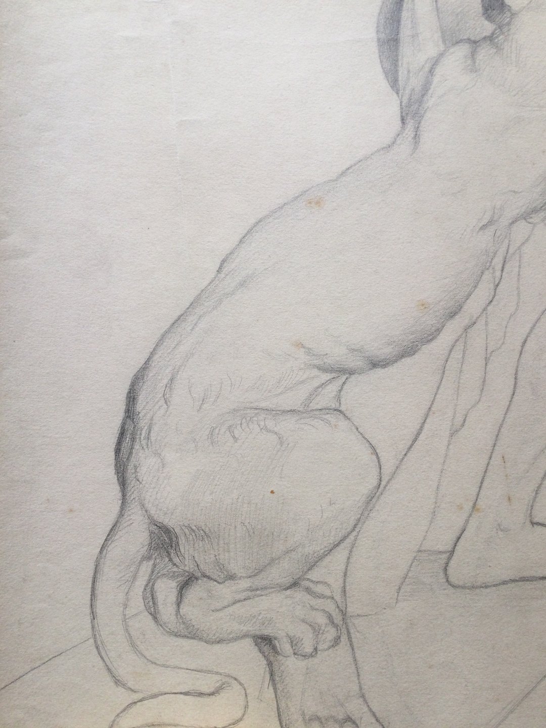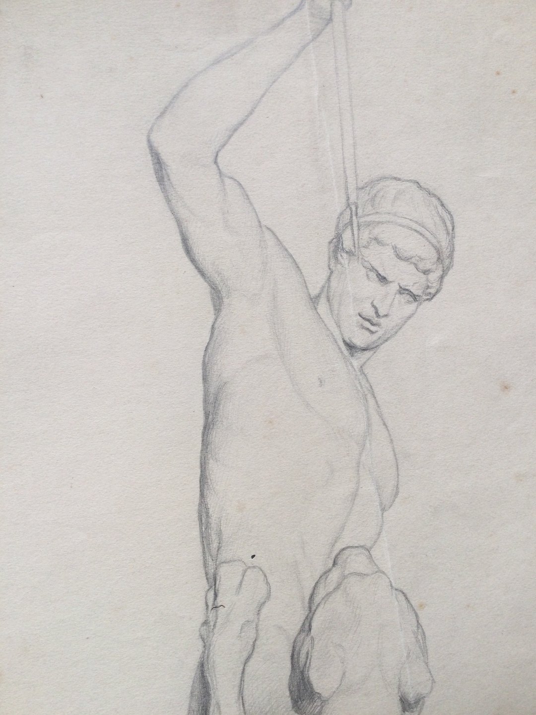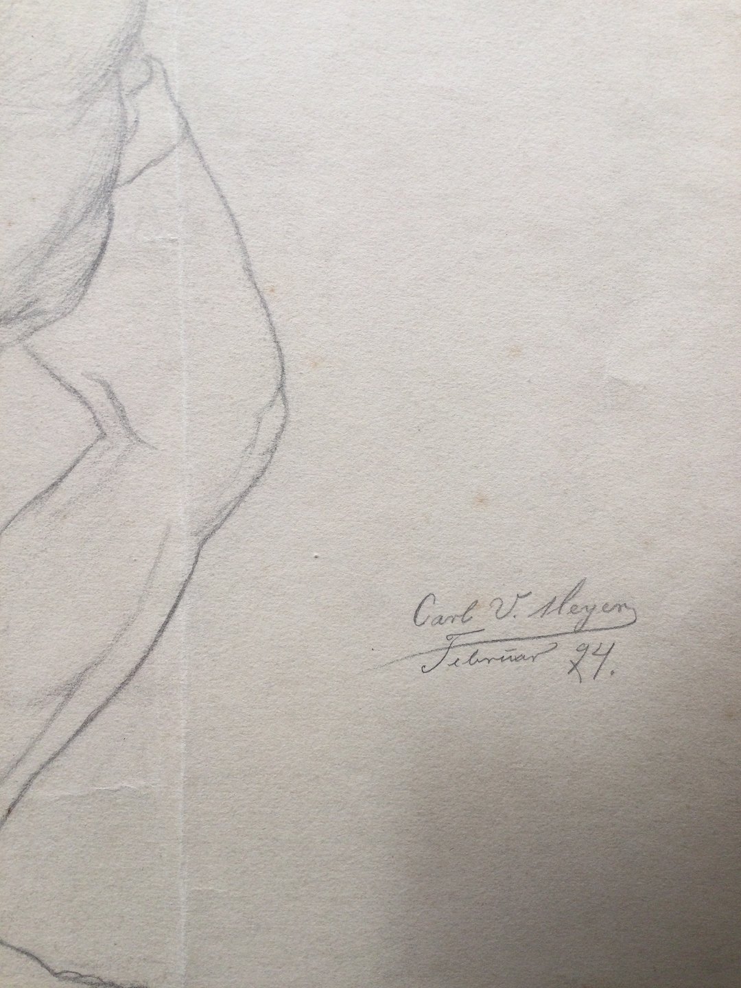 Akademitegning af Carl V. Meyer 1894 - Skulptur nøgen mand - Panterjægeren.