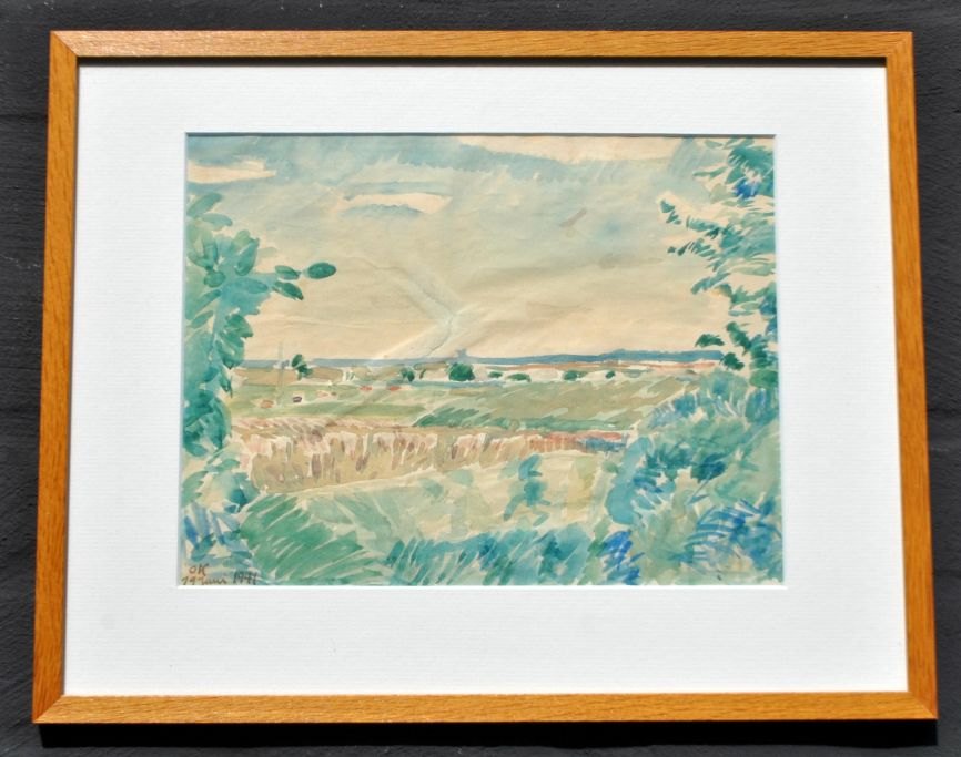 Kielberg, Ole (1911 - 1985) Denmark: Field landscape, 1941. Watercolor on paper. Signed: OK 19 June 1941. H: 20.5 cm. W: 26.5 cm.