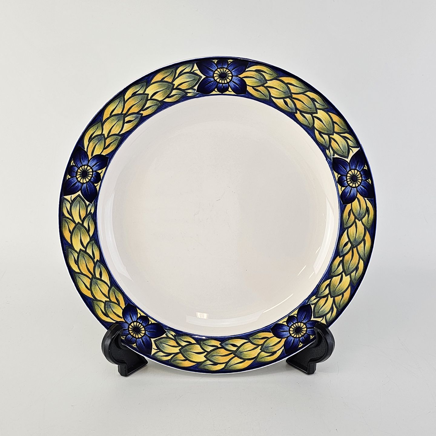Blue Pheasant er fremstillet i glat lys fajance med motiv af en fasan med blå og gule farver. Kanterne er dekoreret med gule kornakse og blå blomster