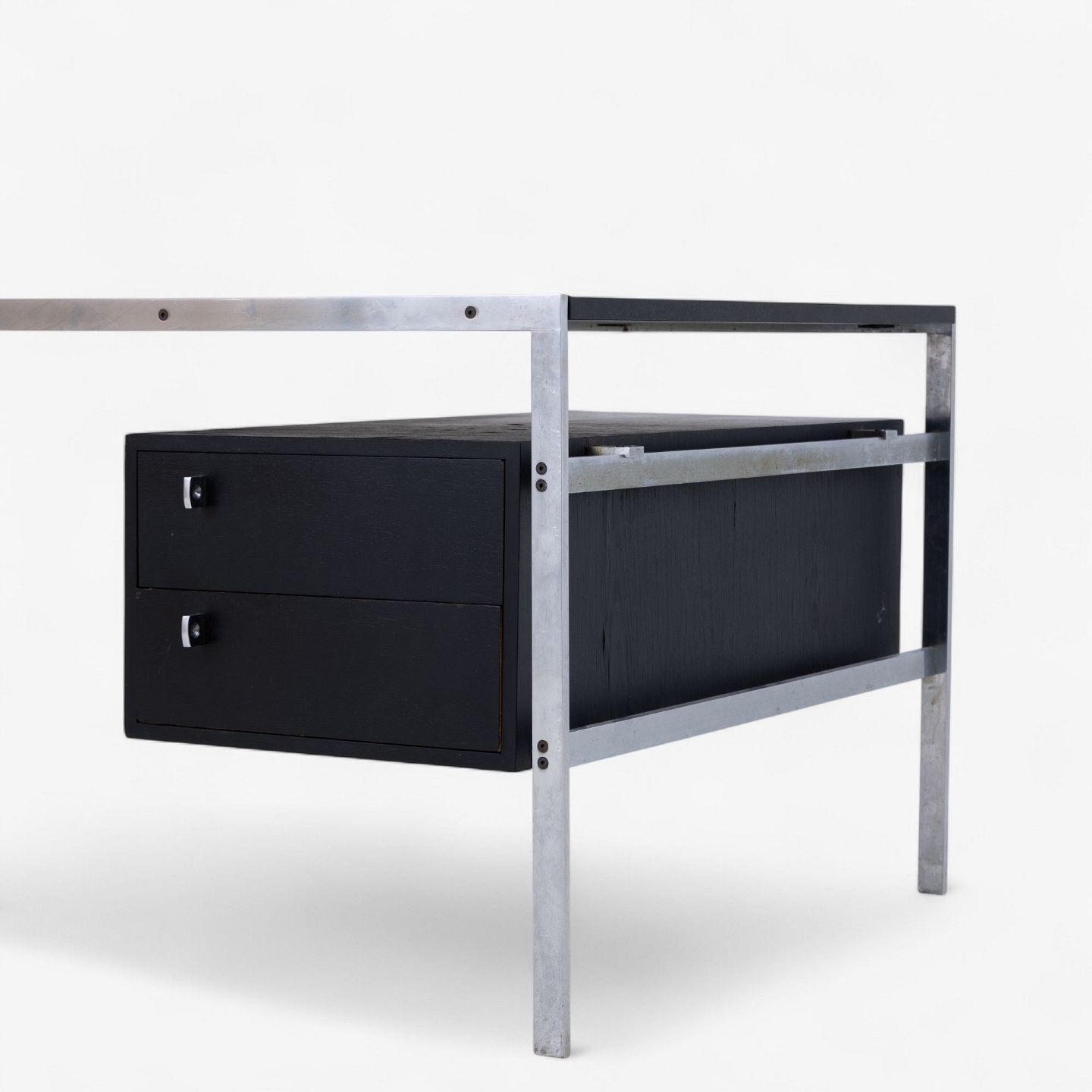 BO 550 - Steel desk with 'Nero Assuloto' granite top and black wenge drawer module.