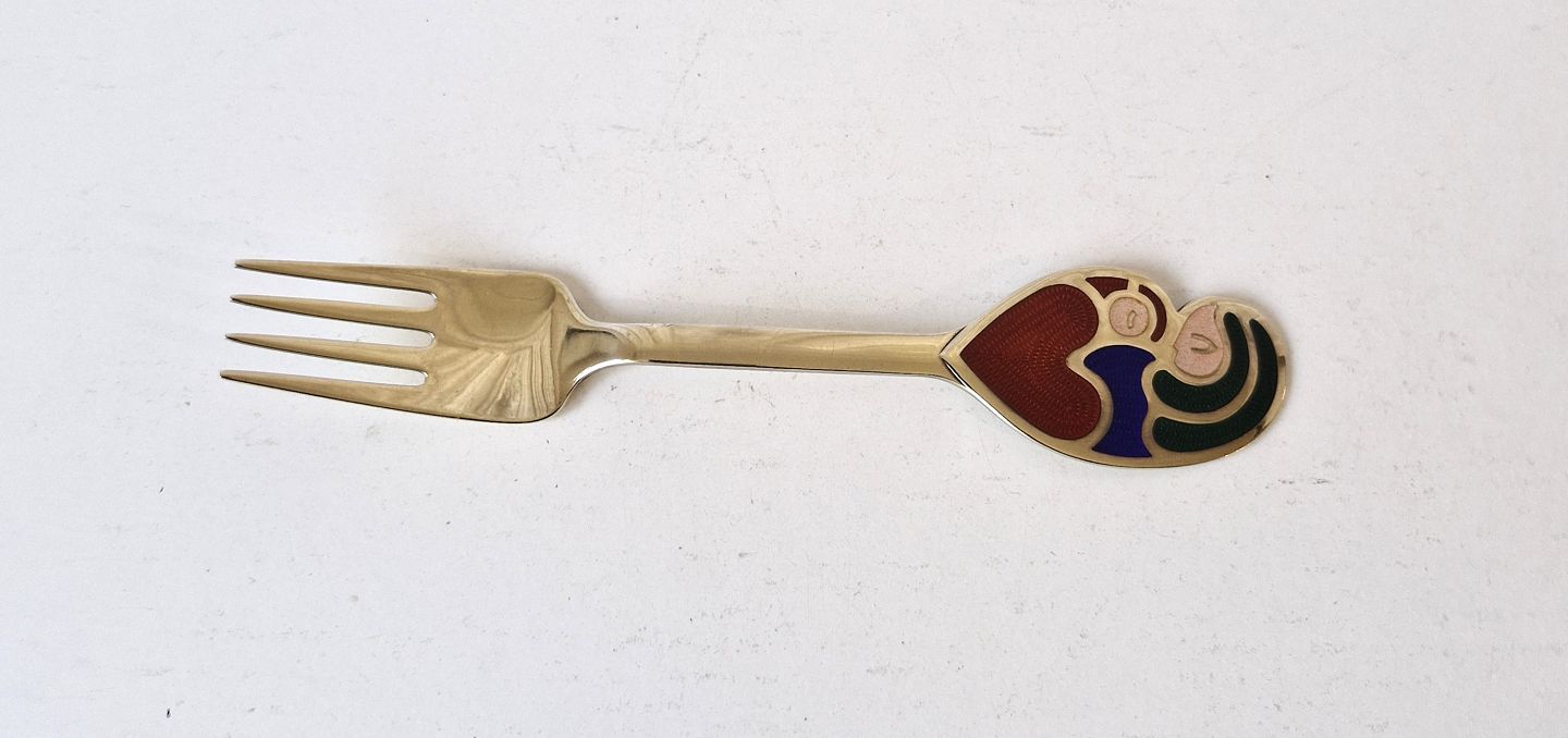 A.Michelsen julegaffel i forgyldt sterlingsølv med emalje 1968