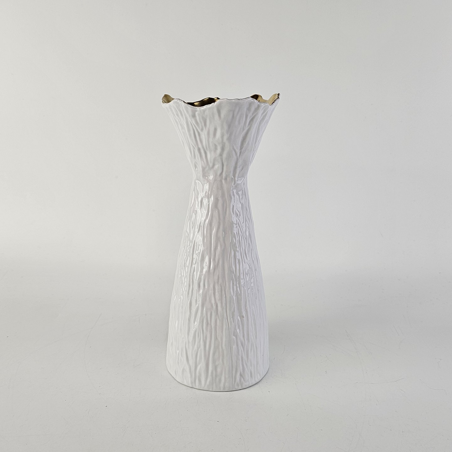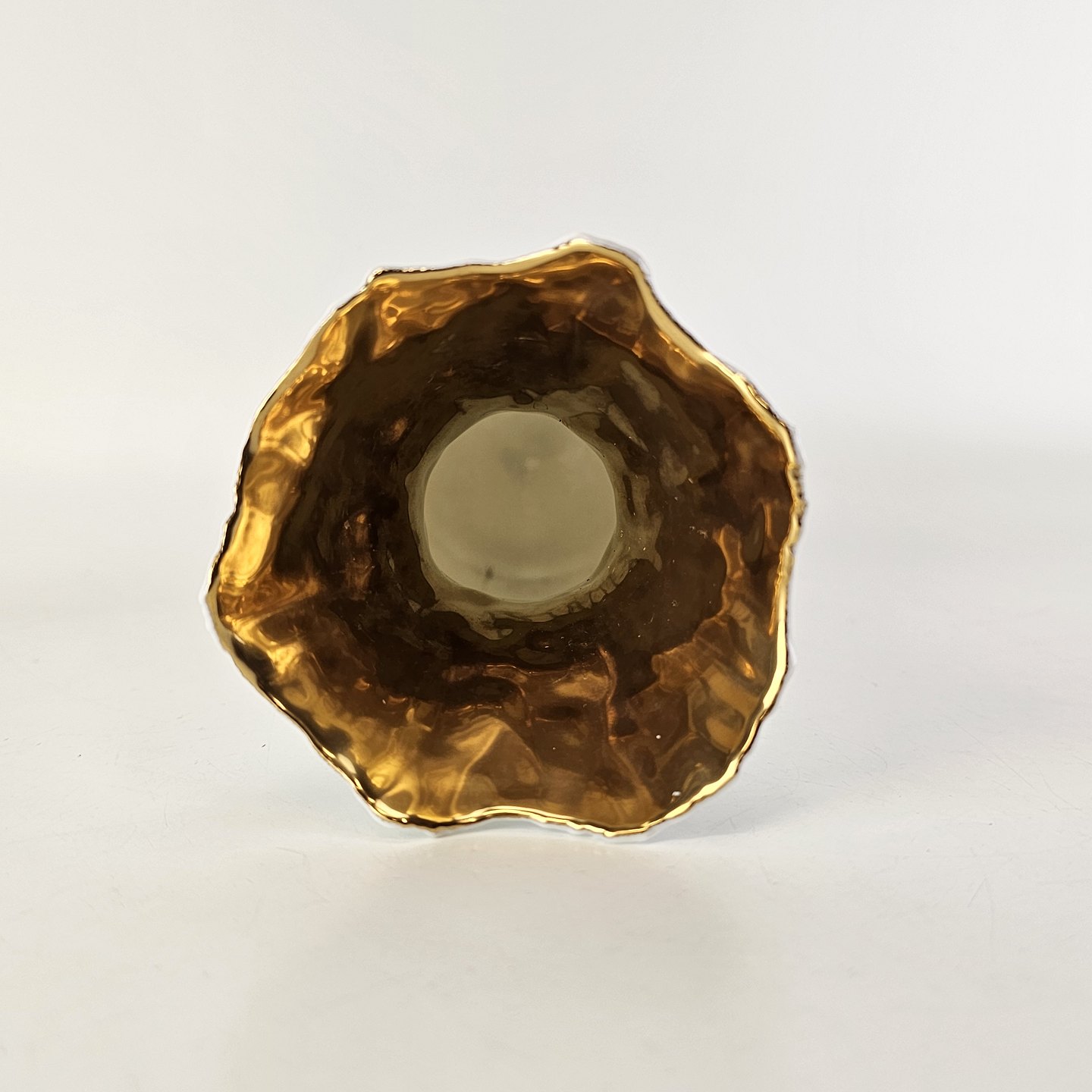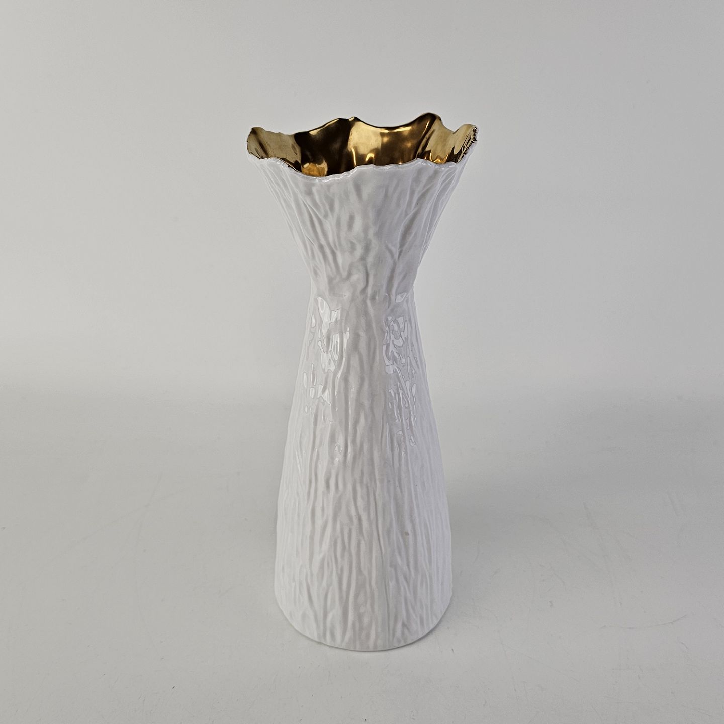 Hyacint vase i hvid keramik som er guldbelagt på indersiden i toppen